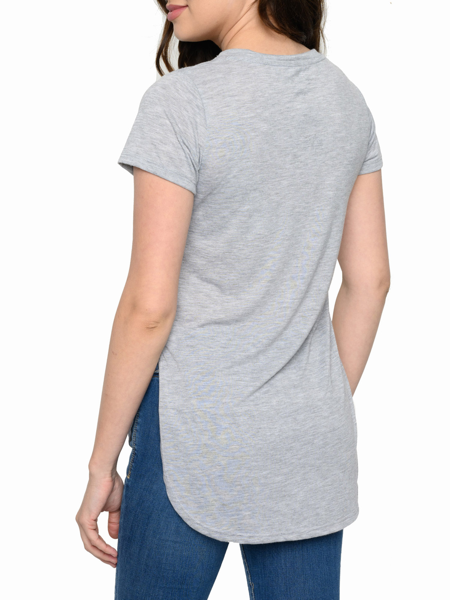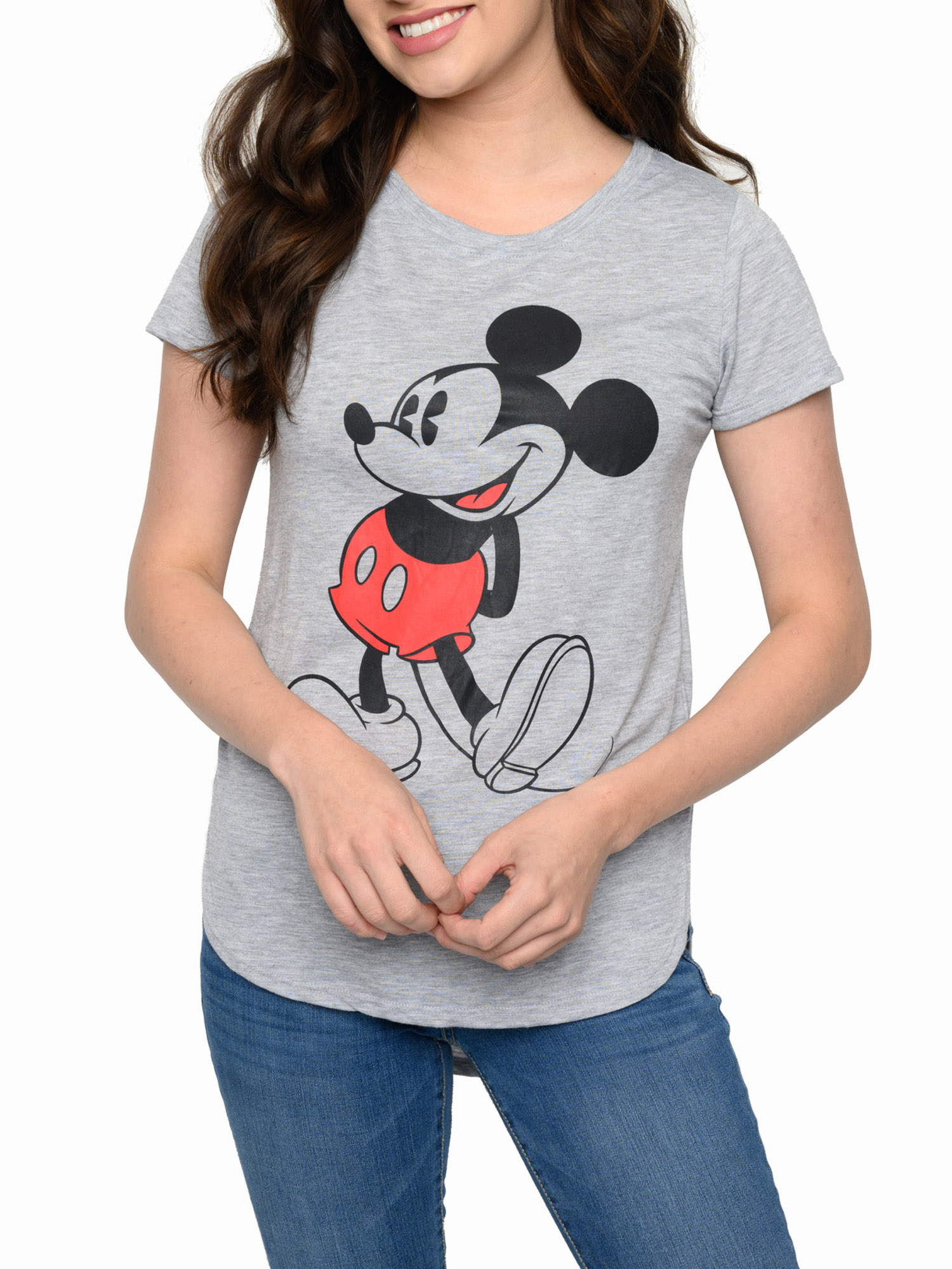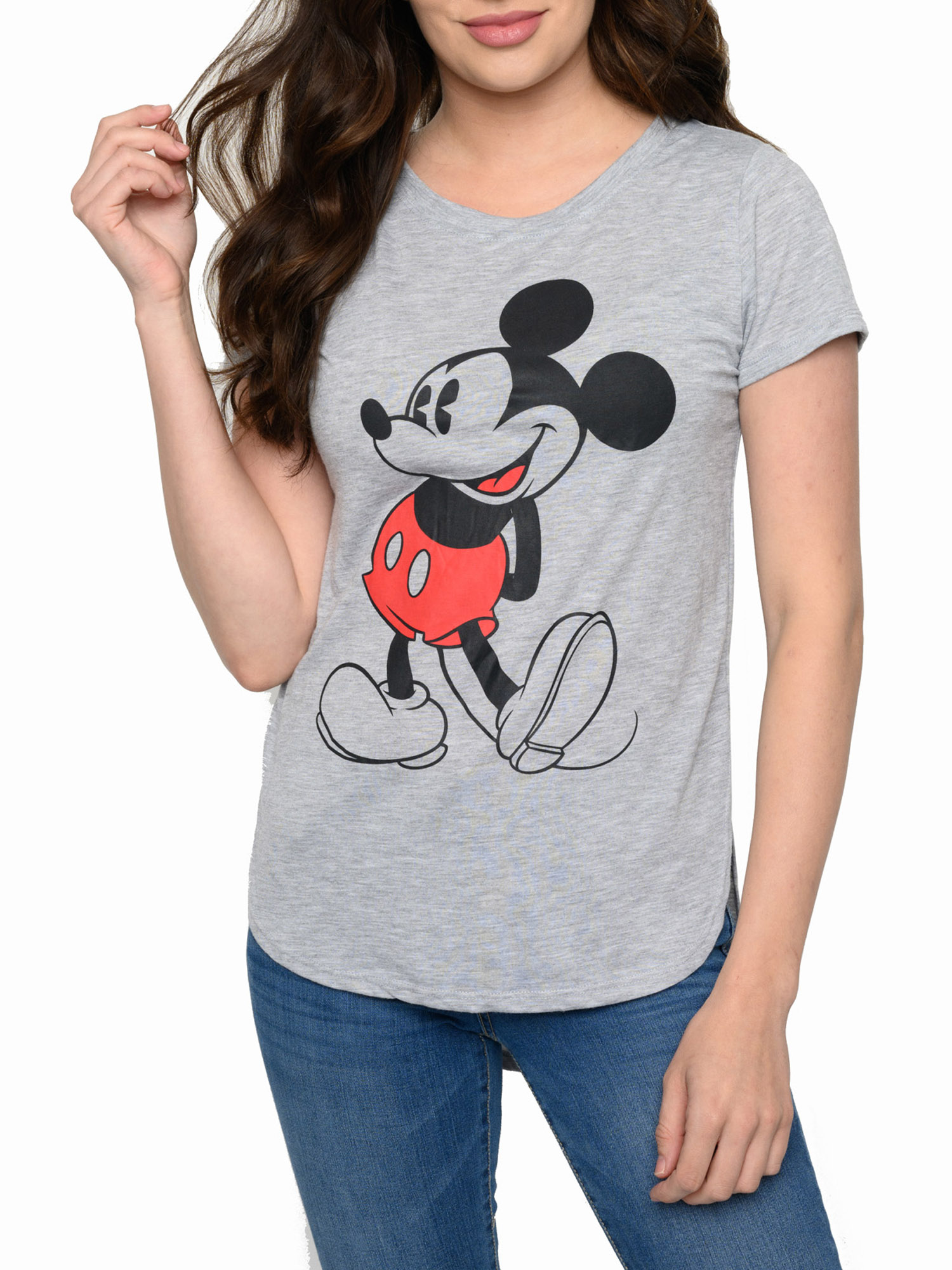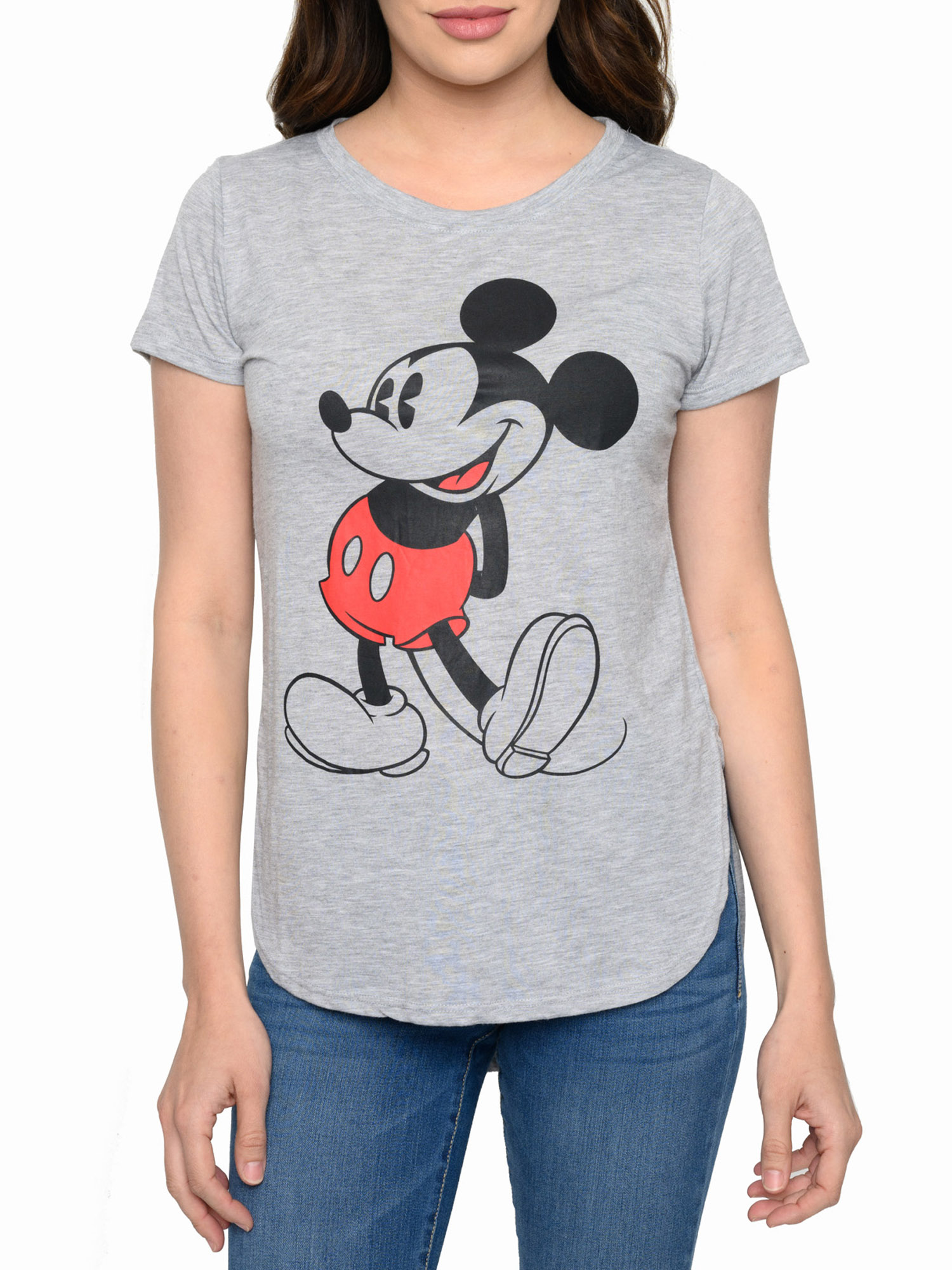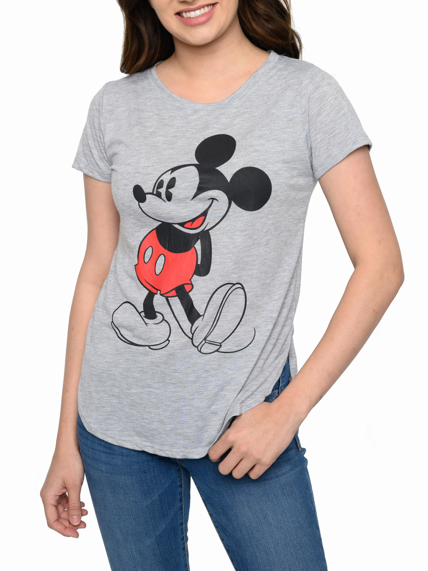 - Juniors Disney Classic Mickey Mouse Hi-Low Hem T-Shirt Heather Gray.