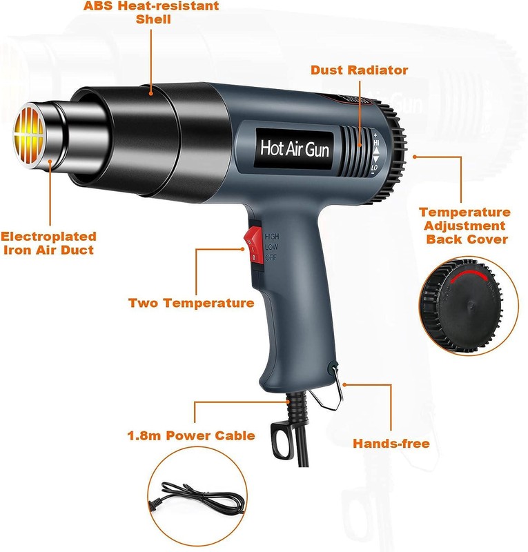 2. Stepless Temperature Adjustment: The rotating black dial can adjust the temperature from 122-1112°F (60-600°C) to help users complete various tasks and DIY projects; can be used for shrink wrap and heat shrink tubing, paint stripping and Adhesives, etc.