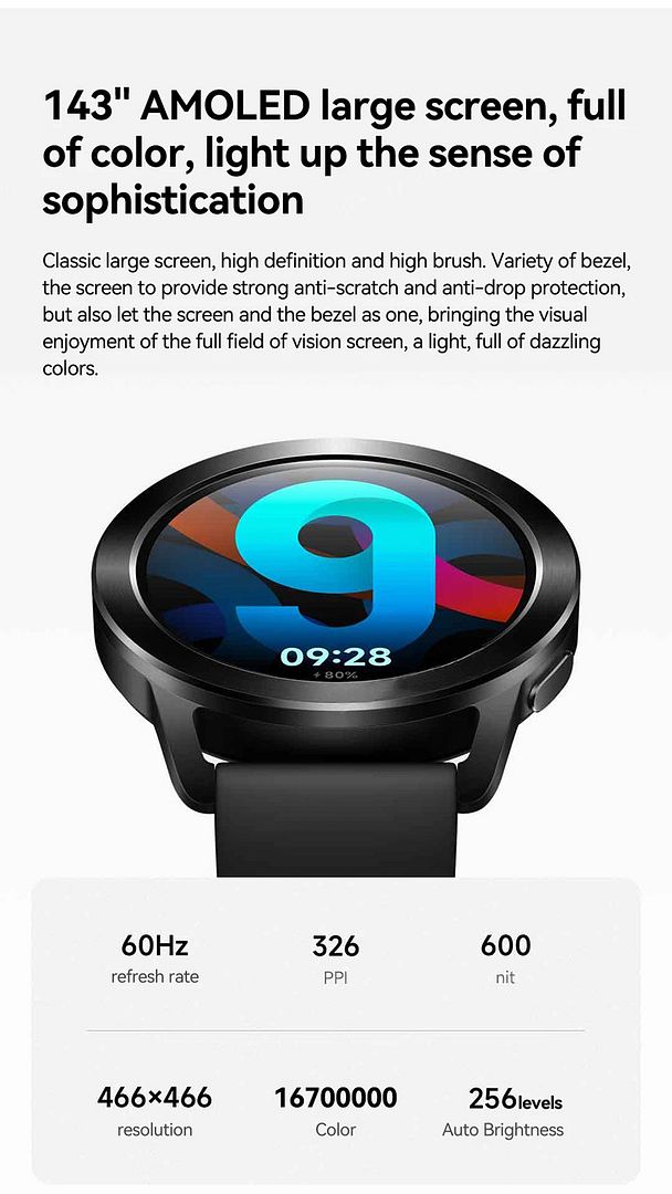 Screen: 1.43-inch AMOLED display screen