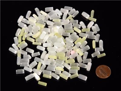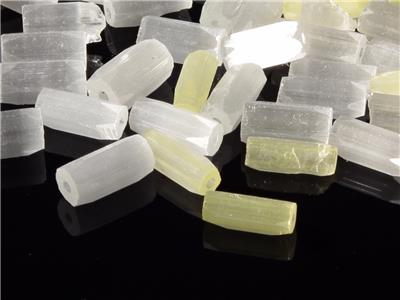 Approximately (180) vintage Czech Bohemian frost alabaster crystal and pale yellow satin atlas pentagon faceted bugle glass beads. Please note atlas beads all have slightly different cuts and dimensions. Premium quality vintage Czech glass beads. Some of these are a little chipped but the majority are in good condition.