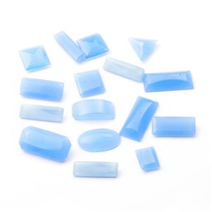 (16) Czech antique vintage mixed molded and geometric hand faceted chalcedony opaline art glass rhinestones and cabochon beads. These are from the turn of the last century and have beautiful color, superb clarity and finishing. These beads were made for export to produce high quality fine jewelry. Some have minor corner nibbles which will be hidden when mounted.