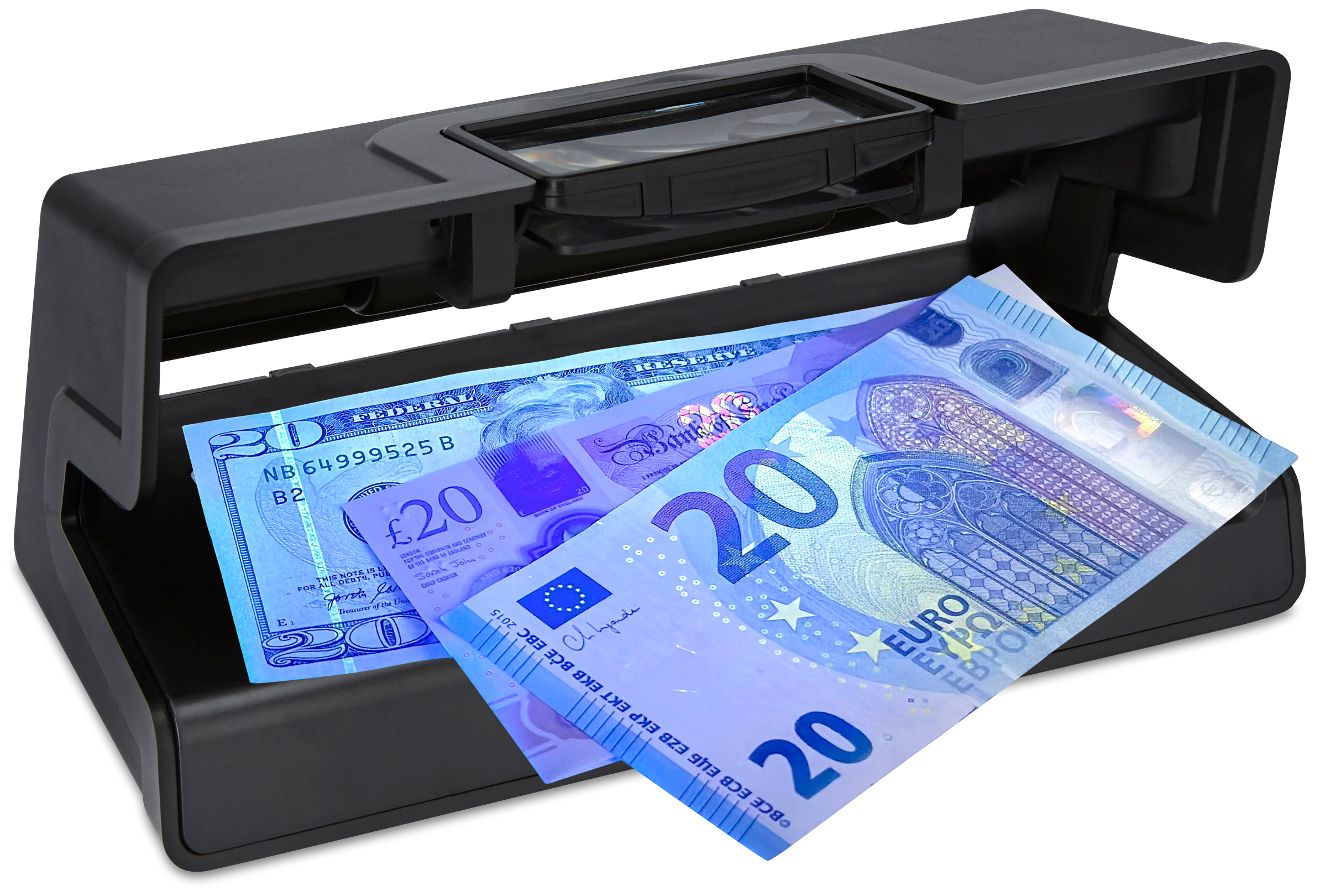 The D30i's unique magnifying glass works hand in hand with it's other counterfeit detections allowing you to inspect your banknotes and official items thoroughly.