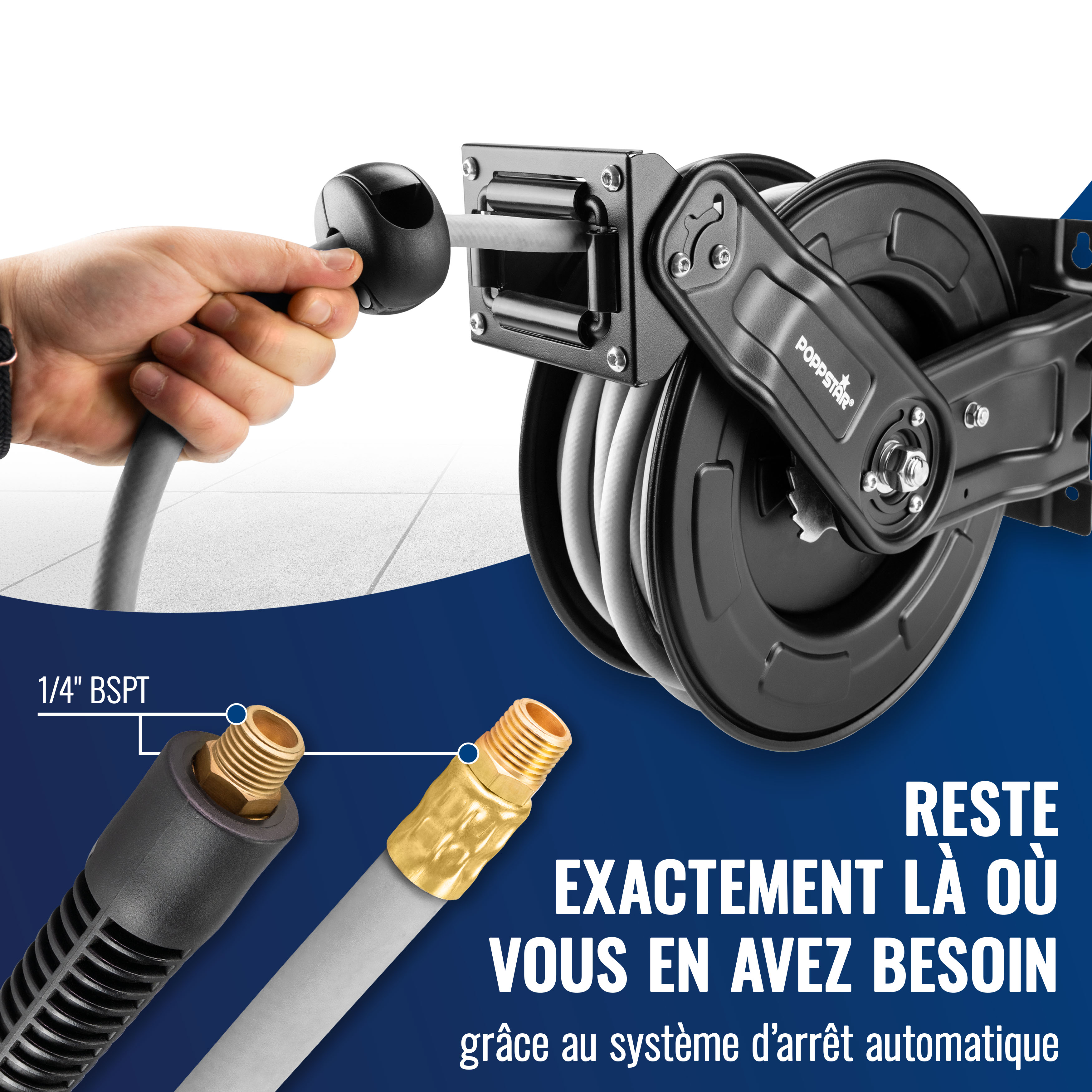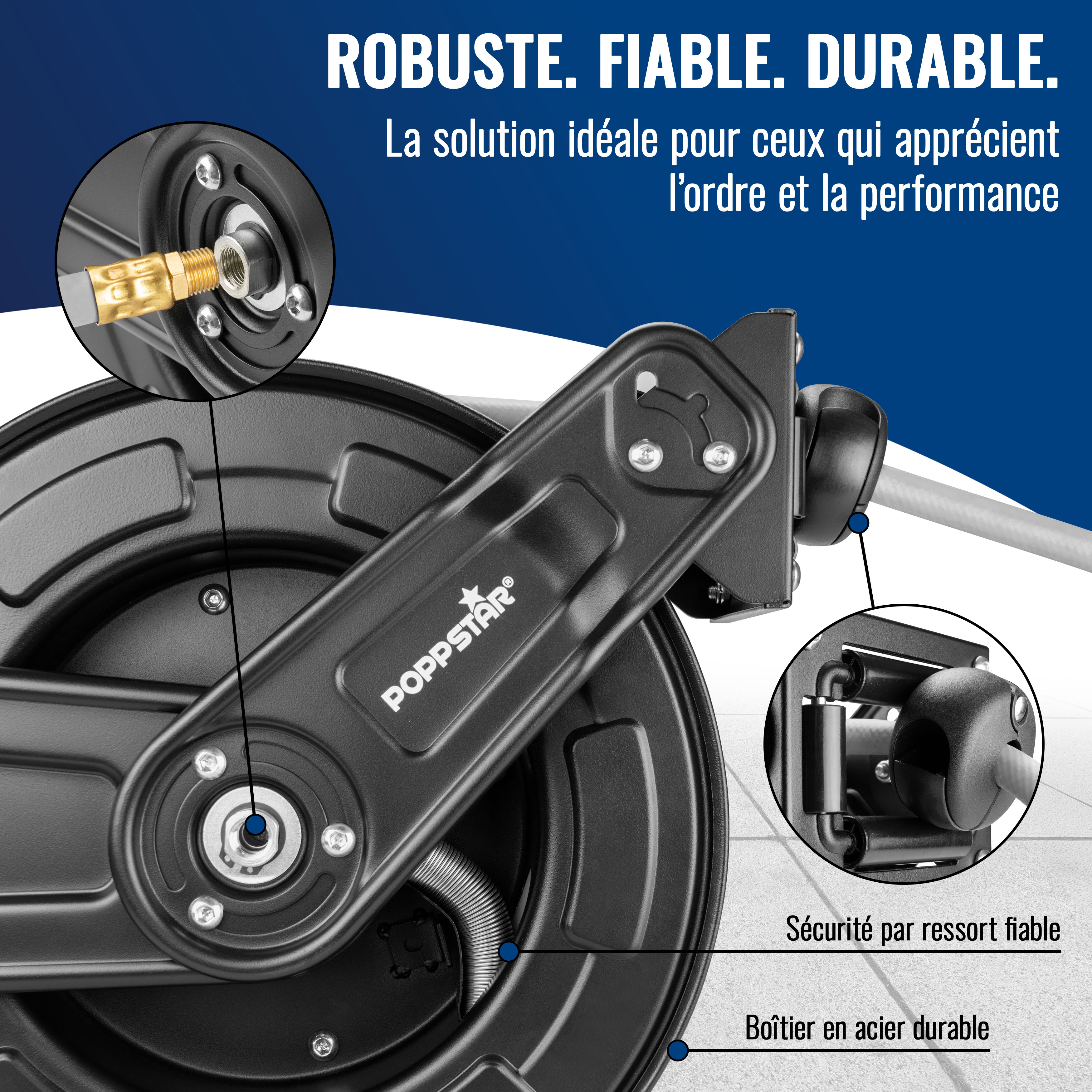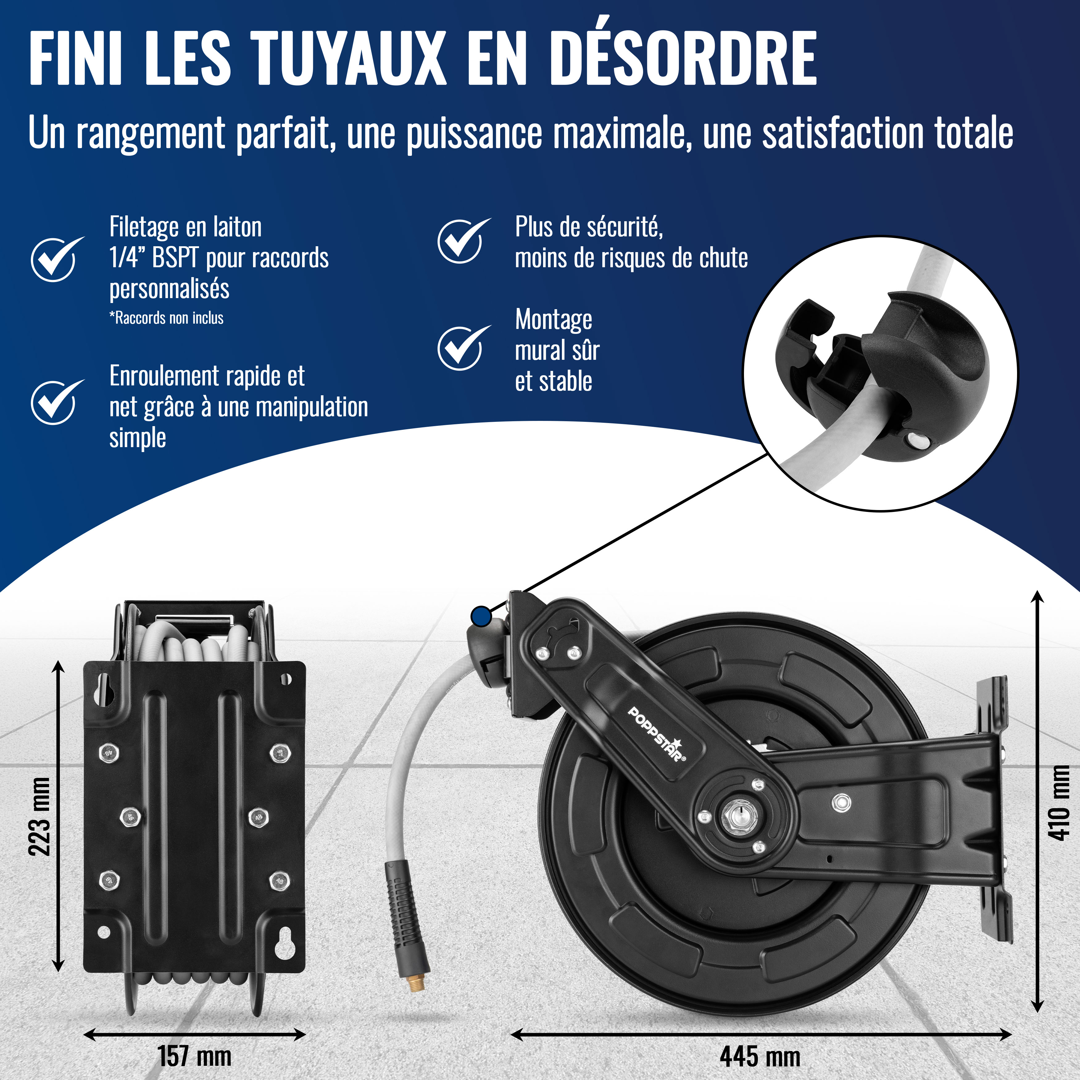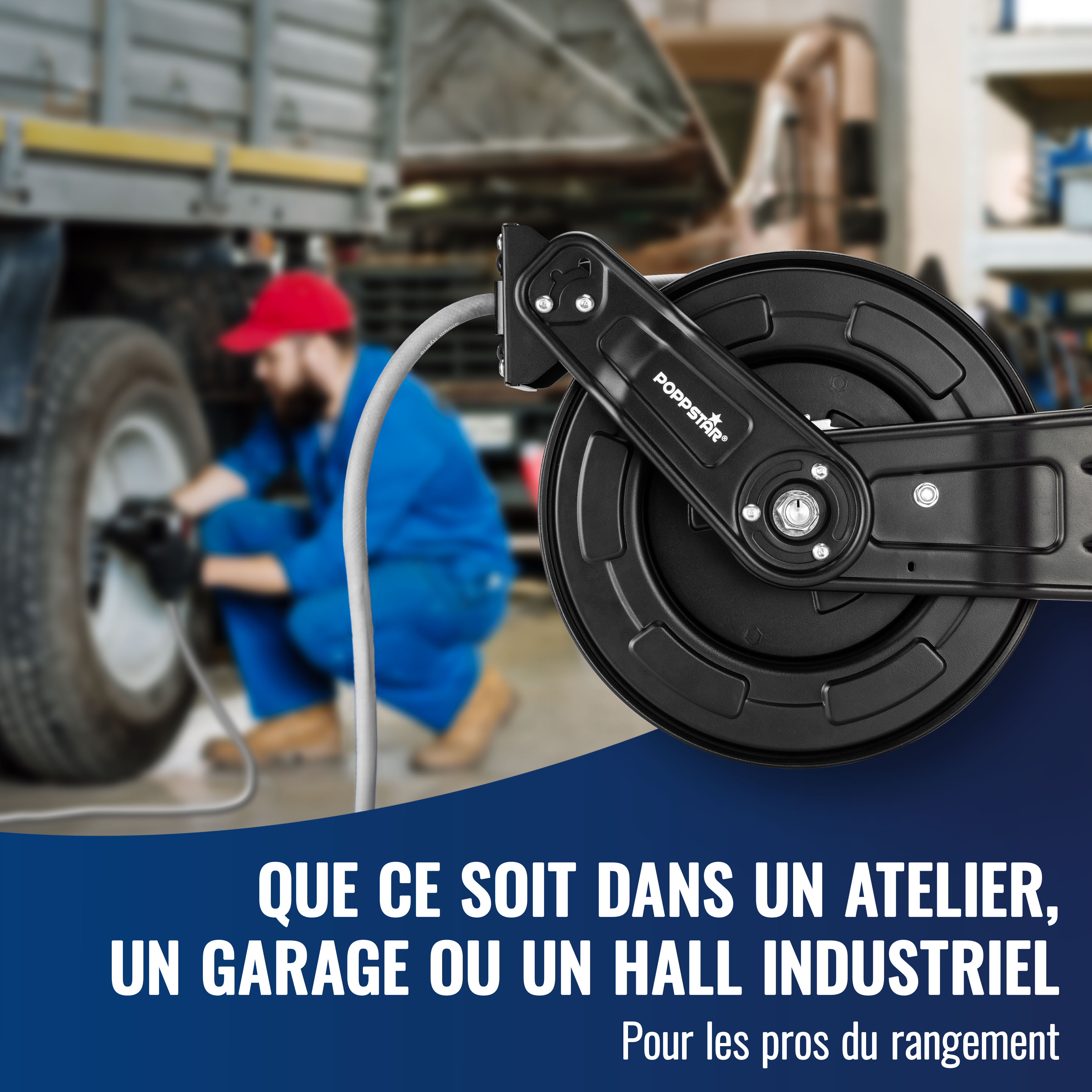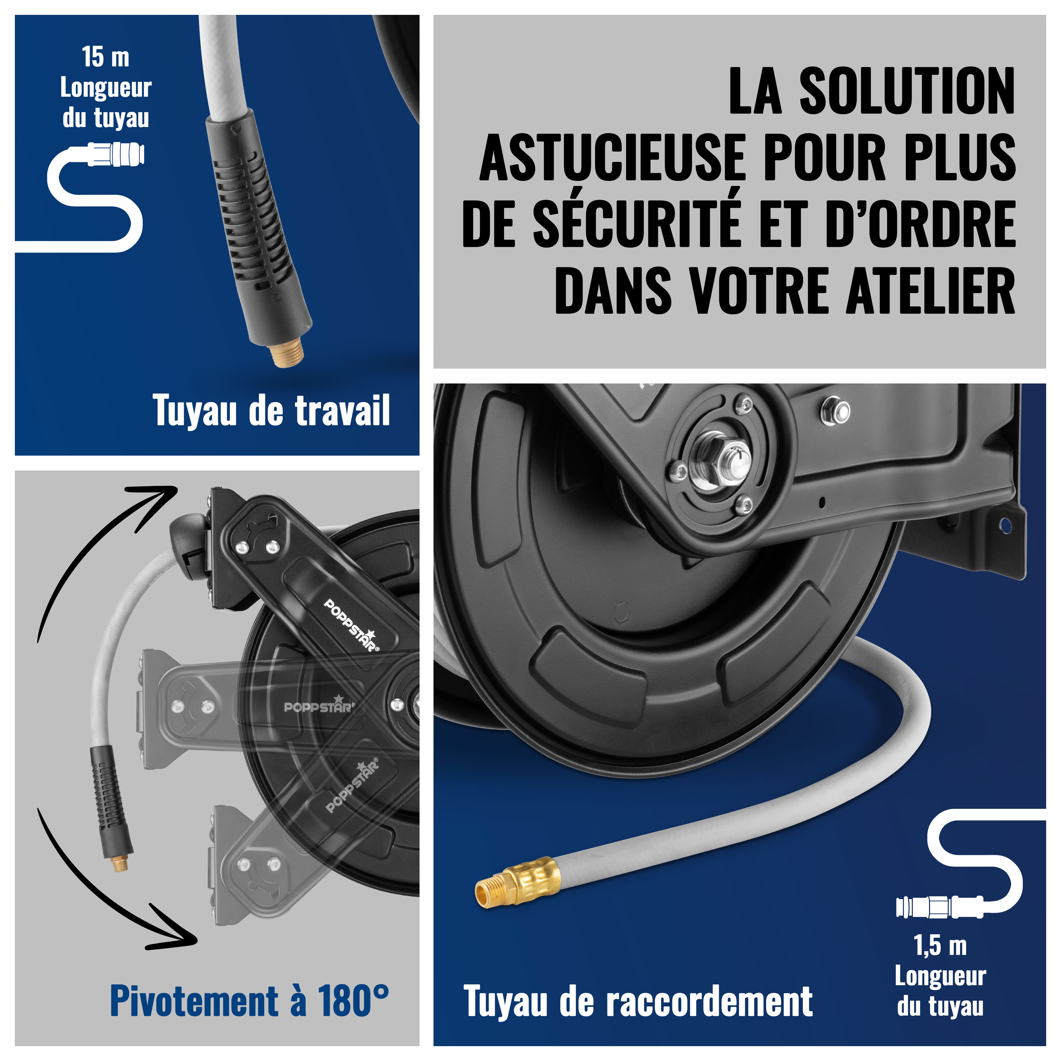 Le Poppstar PREMIUM enrouleur de tuyau d'air comprimé en acier: un outil pneumatique indispensable pour votre atelier