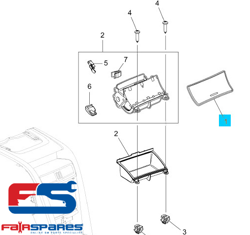 VE WM GTS Grange Commodore Calais and Statesman Caprice Front Lower Centre Console Storage Compartment Door in Platinum Colour with Chrome Trim.