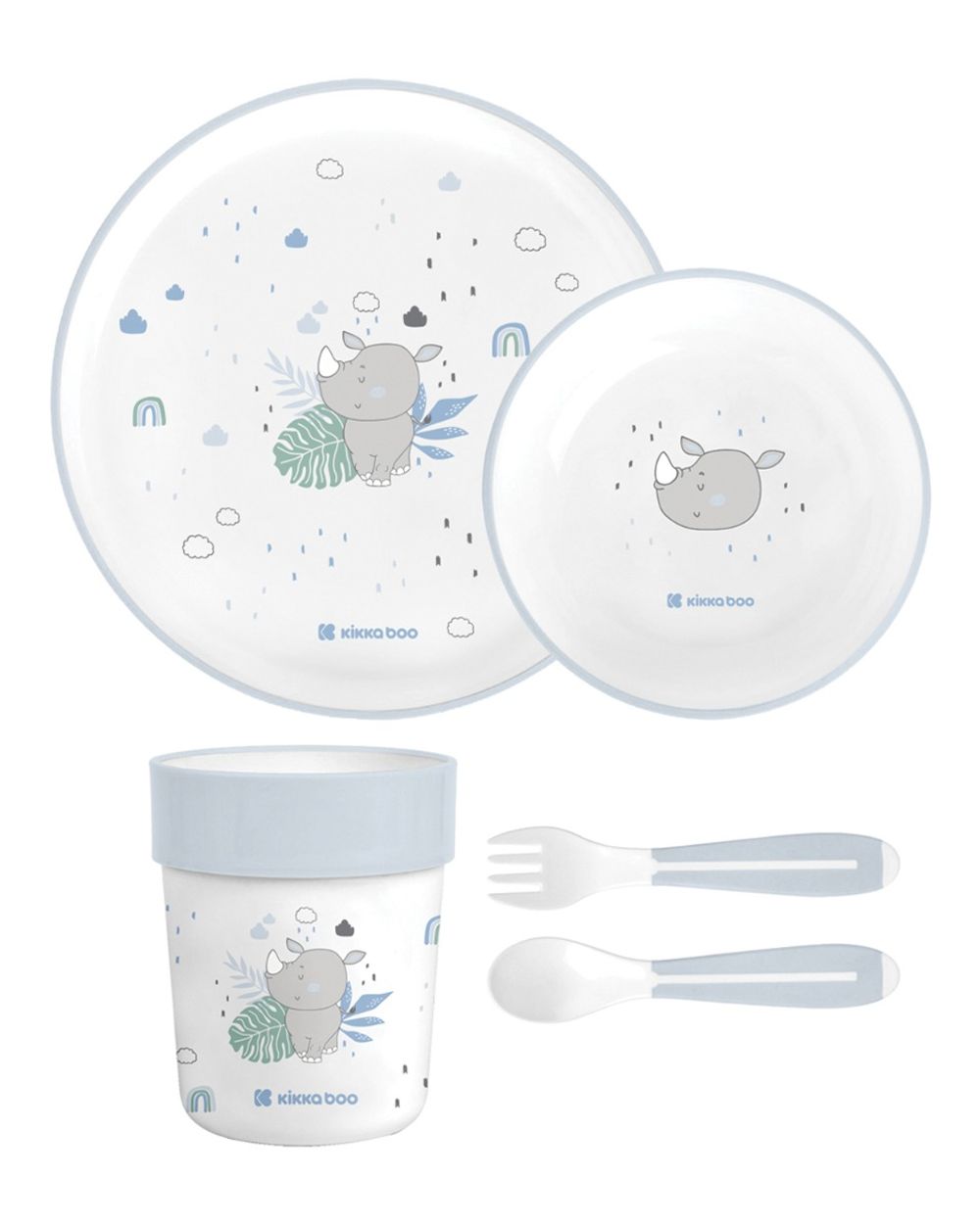 Das Kikkaboo Kindergeschirr Set Savanna besteht aus 5 Teilen. Einem Teller, einer Schale, einem Becher, einem Löffel und einer Gabel. Für Kinder ab 6 Monaten.