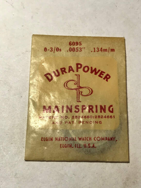 Elgin Factory DuraPower Mainspring for 0s & 3/0s movements, Factory No. 2097 / 6095, new in likely open envelope. These are available in a couple of strengths which you should be able to select from the drop-down list. See images for precise specifications. I likely have several of these so the one you get may differ slightly from the images, with some of the envelopes quite likely being open. I specialize in hard to find watch parts and all watch parts are unconditionally guaranteed. Images do a pretty good job of representing the item.