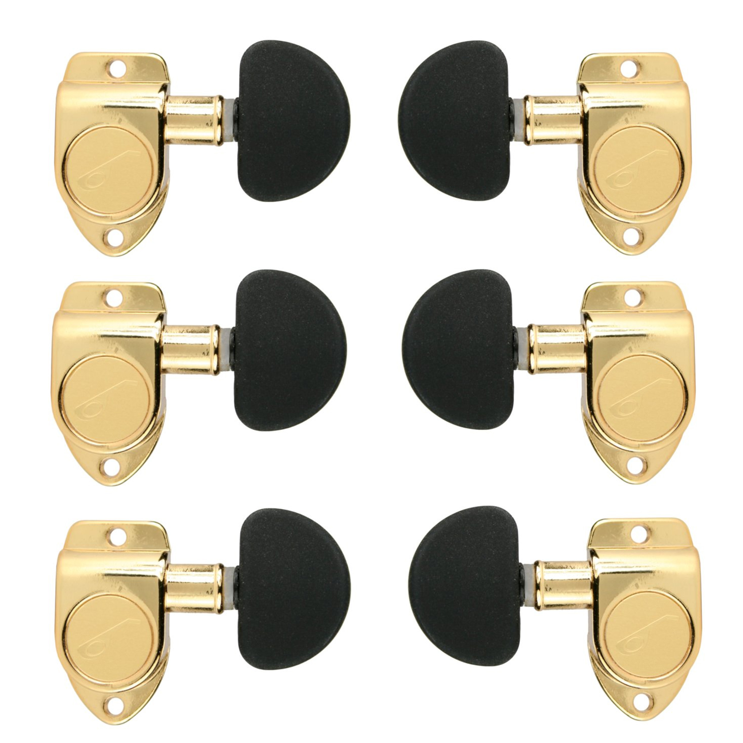 Ovation Gold Guitar Tuning Machines Set, Black Large Pegs, 3+3 6 Strings