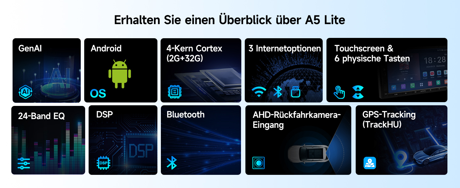 Bluetooth-Verbindung: Das A5 Lite Bluetooth-System verbindet sich mit Ihrem Telefon und Drittanbieter-Geräten wie Diagnosescannern. Streamen Sie Musik und nutzen Sie gleichzeitig weitere Bluetooth-Funktionen für verbesserte Konnektivität und Komfort