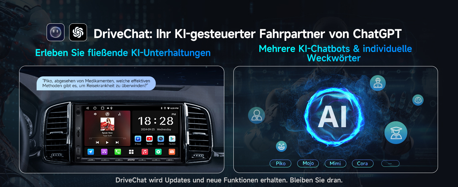 DriveChat: Von ChatGPT angetrieben, ermöglicht diese exklu-sive App vielfältige Interaktionen. Wechseln Sie zwischen spezialisierten Chatbots und personalisieren Sie Weckwörter, um Ihr Erlebnis anzupassen