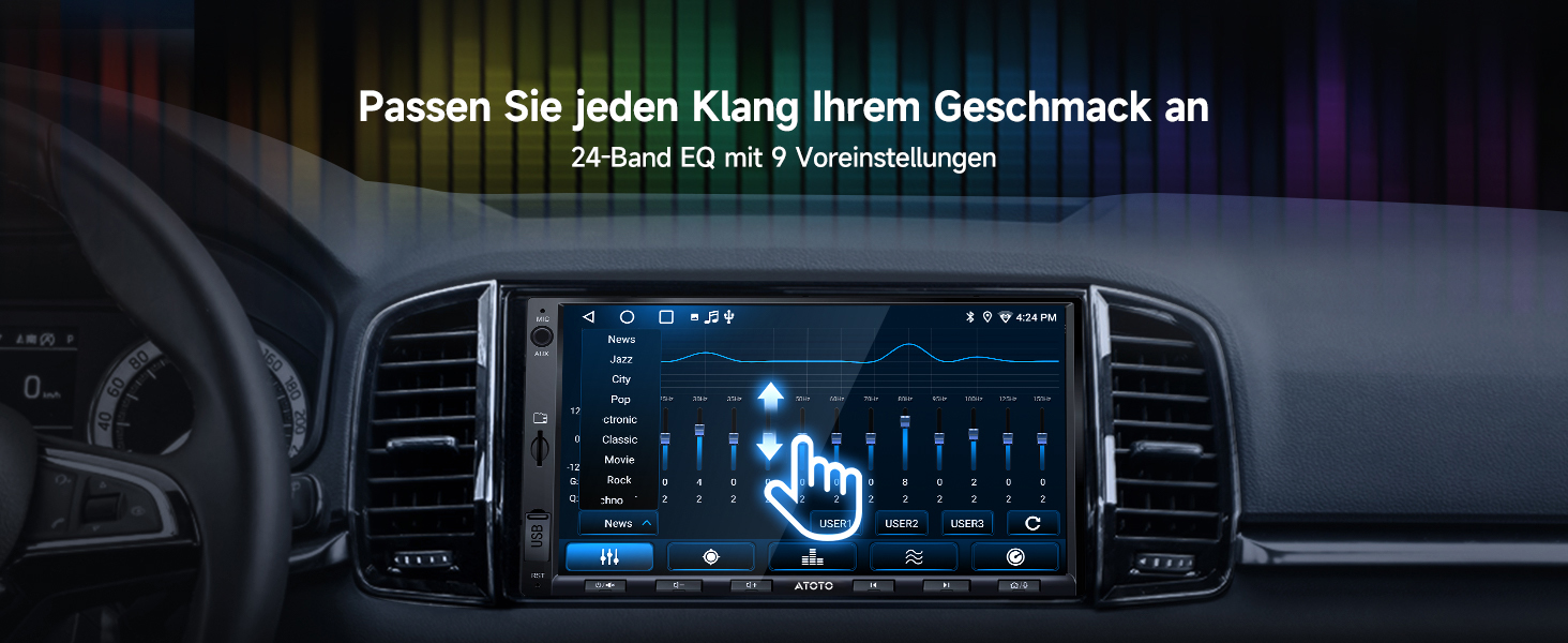 Verbesserter DSP: A5 Lite Autoradio 2DIN mit eingebautem Verstärker (Peak 4x45W, RMS 4x24W) und 24-Band EQ mit 9 Voreinstellungen. Mit dem DSP passen Sie den Klang nach Ihren Vorlieben an für ein individuelles Hörerlebnis