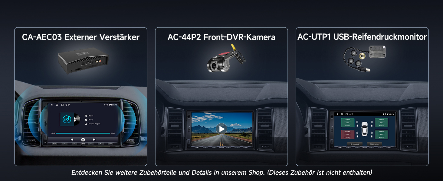 Konnektivität & Montage: Modell mit 6 Tasten, 1 USB-Port für Telefon, 1 TF-Slot (bis 128GB) für Medien, AUX-Eingang für externe Audiogeräte. Kompatibel mit den meisten Doppel-DIN-Dashkits und Installationskits großer Marken