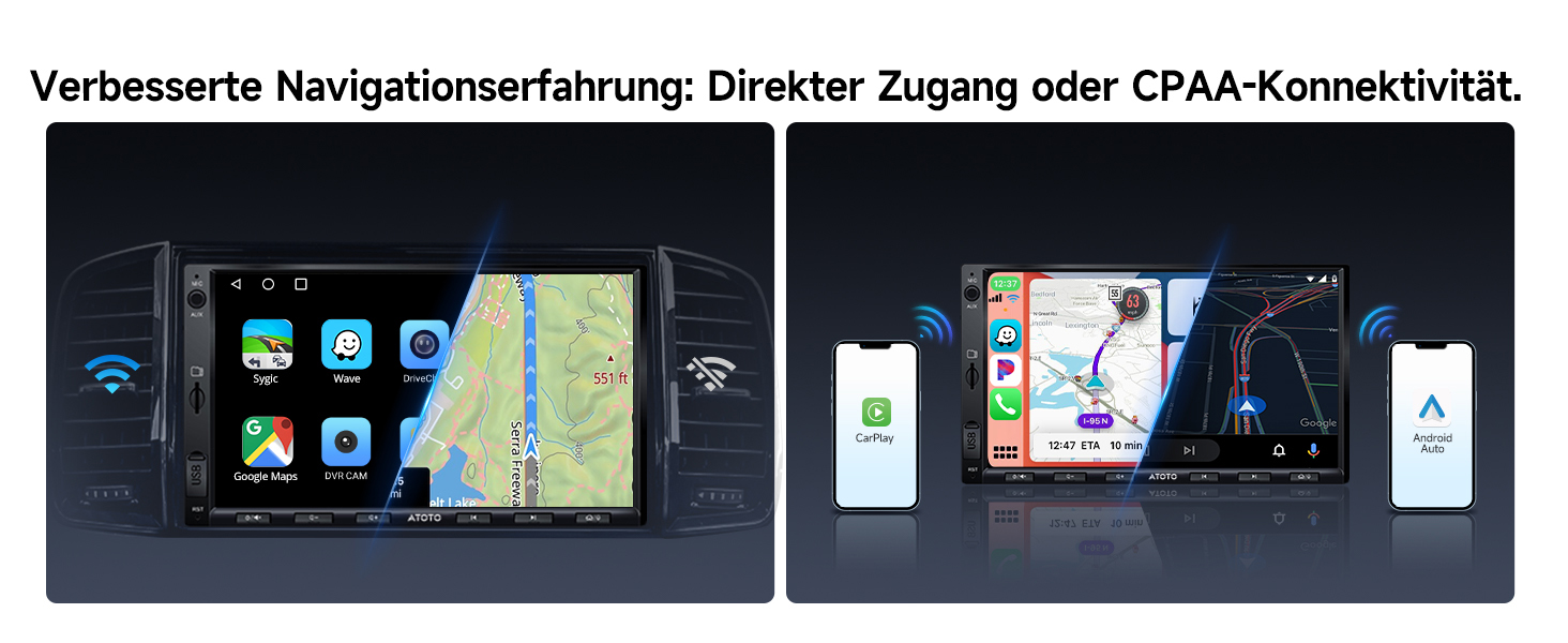Drahtloses CarPlay & Android Auto Wireless: Unterstützt CarPlay und Android Auto, kabelgebunden und -los. S-ir-i/GGLE Assistant für Navigation und mehr. Telefonspiegelung für Nicht-CPAA-Apps auf dem 7-Zoll IPS-Bildschirm des A5 Lite
