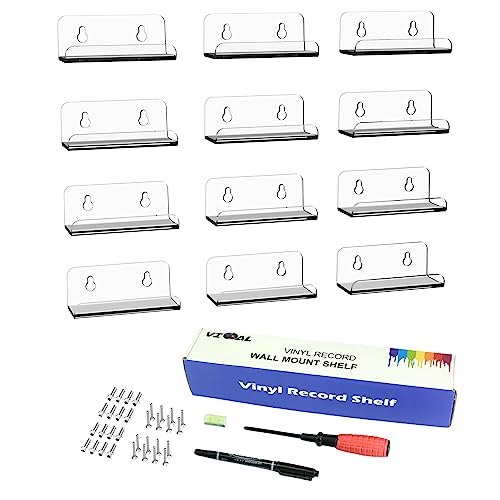 12 Pack 4 Inch Vinyl Record Shelf Wall Mount,Vinyl Record Shelf,Record Shelves Display Daily Listening and Decorate Your Office or Home (12, Clear)