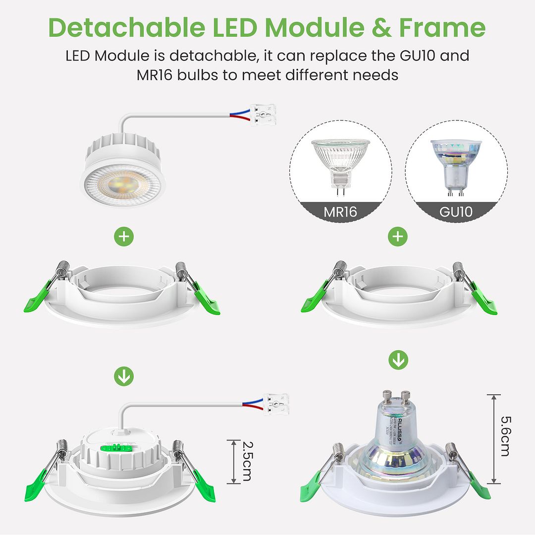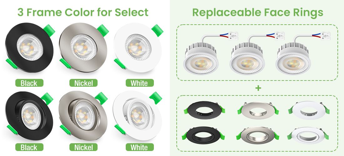 🔔 3 Color Frame: The downlight has 3 face ring colours to choose from: white, black and brushed nickel. You can pick it according to your home's décor.
