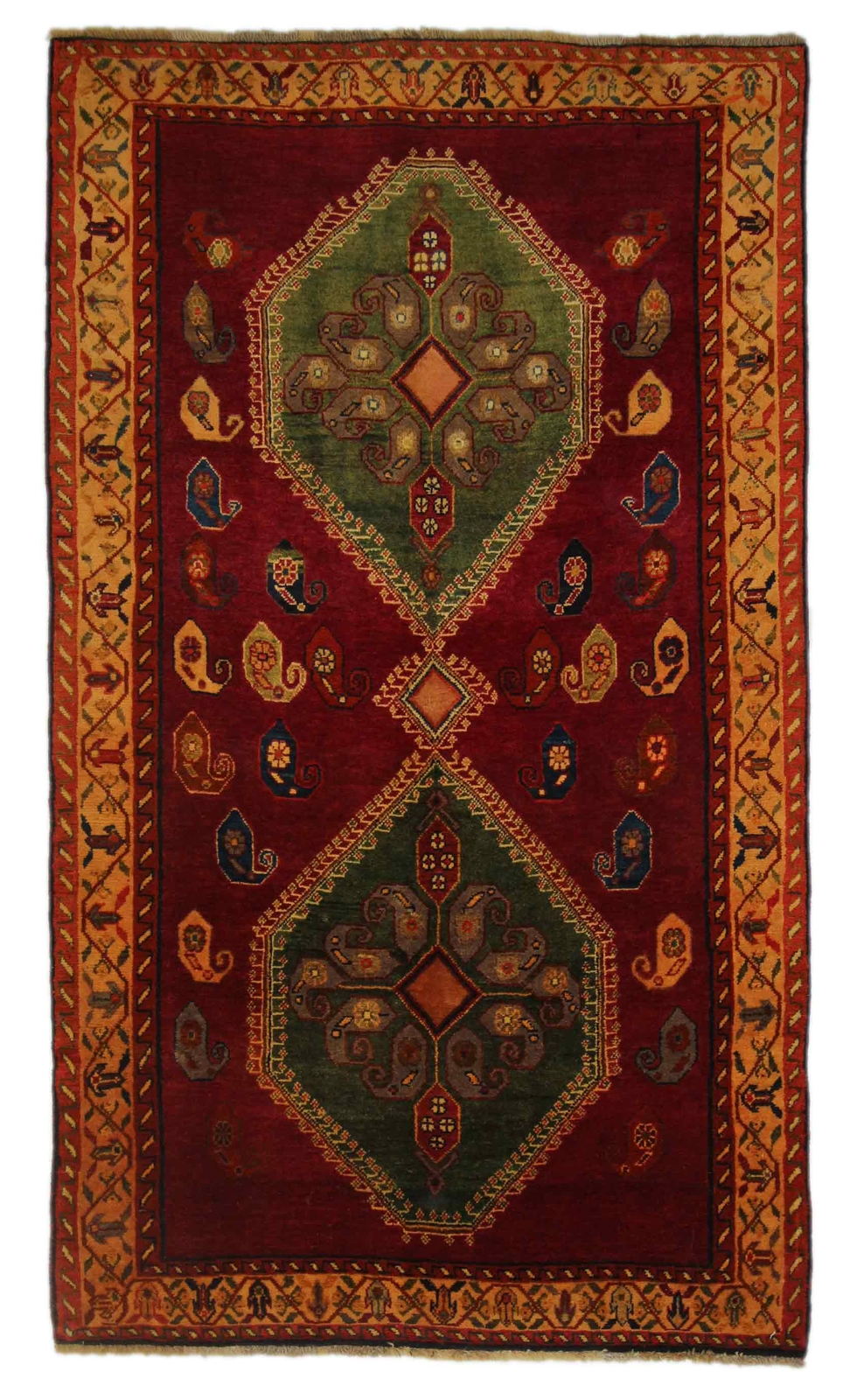 Das Volk der Ghashghai lebt im Südpersien in der Provinz Fars. Das Design und die Farben ähneln denen der Shiraz - Teppiche, jedoch weisen Ghasghai Teppiche eine deutlich höhere Qualität aus als Shiraz - Teppiche. Ghasghai - Teppiche werden zumeist unter freiem Himmel und ohne vorherige Planung aus natürlicher Wolle geknüpft. Das Design zeichnet sich durch geometrische Ornamente aus.