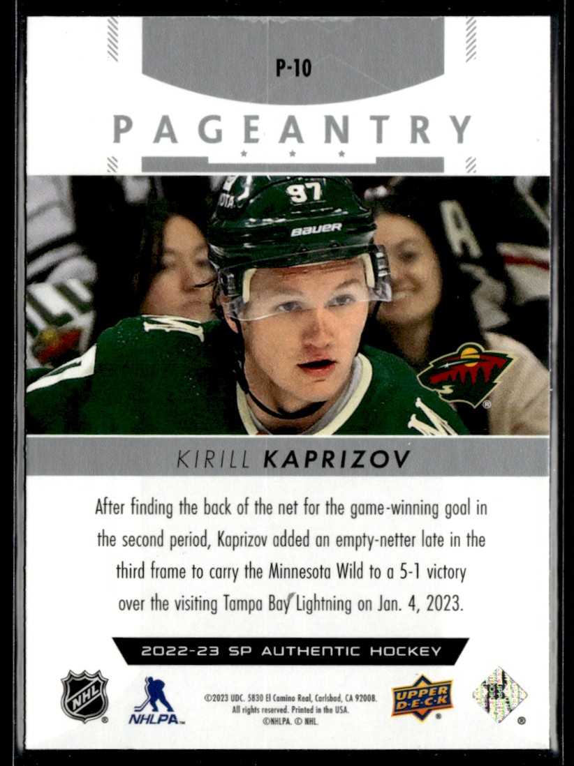 | 2022-23 SP Authentic Pageantry Kirill Kaprizov #P-10 |
