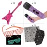 Kids will be ready to rock on until the crack of dawn thanks to this rad wearables kit! Packed with props and apparel all themed after rockstars, this accessory kit will amp up the fun at a themed birthday party or costume event at school. Find matching party decorations, tableware and favors to go with this bundle on our website. (48 pcs. per unit) Includes: • 12 Vinyl Small Inflatable V Guitars (Inflated, 23") • 12 Plastic Child’s Glow-in-the-Dark Shutter Glasses (5 1/4" with 4 1/2" ear pieces. For novelty use only. Expose items to direct daylight to activate glow.) • 12 Vinyl Inflatable Microphones (Inflated, 8".) • 12 Polyester Rock Star Bandanas (20" x 20") • Assortments are subject to change at any time and may vary from picture shown. Substituted items will be similar in nature.