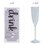 Ideal for wedding receptions or bridal showers, this delightful drinkware set turns your toasts into a playful party! Simply dispense drink tickets and glasses to invite your guests to join in the bubbly fun. Then add your favorite champagne (or sparkling cider for the non-drinkers) and get ready to raise those glasses in a toast to love, laughter and happily ever after!