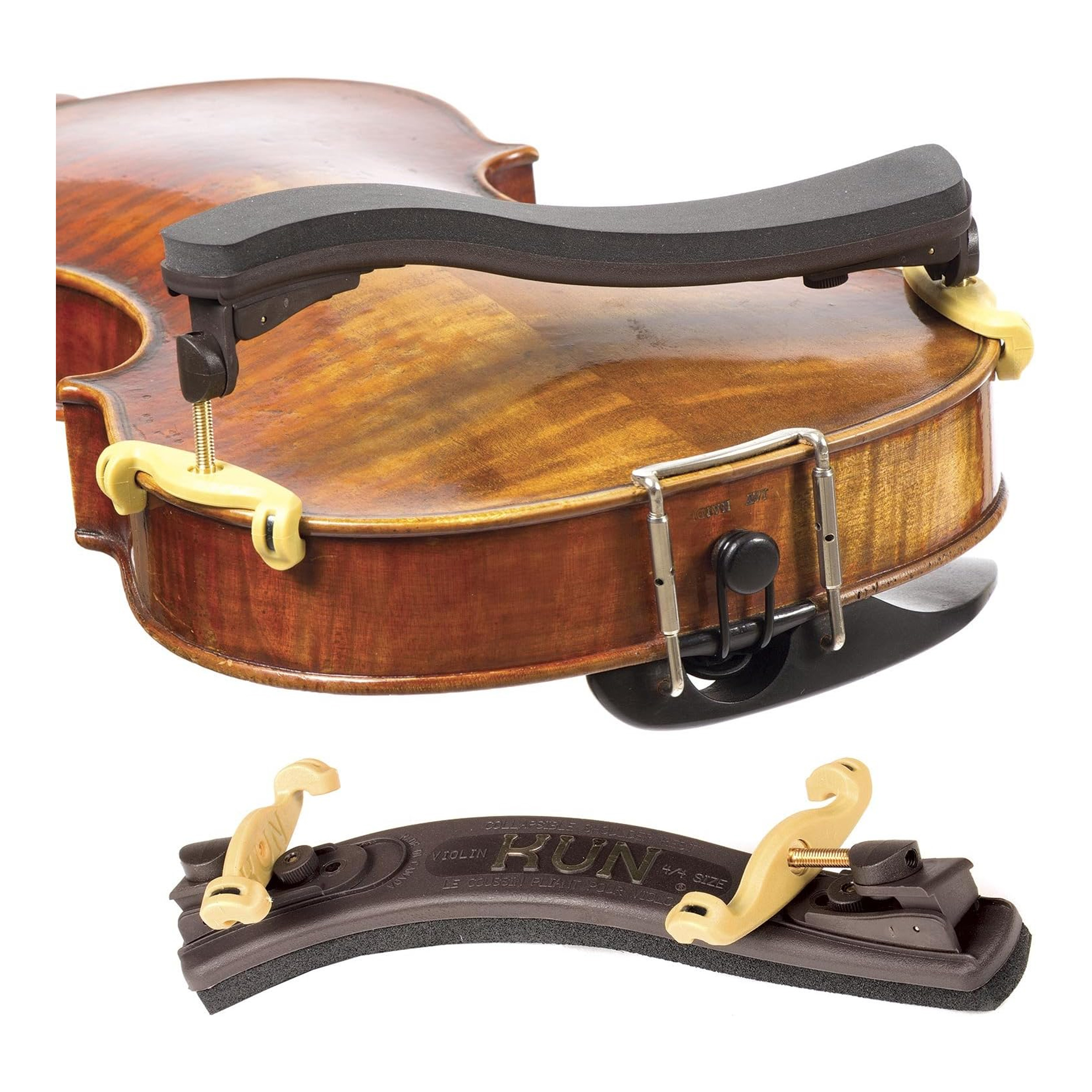 Modelled on the Kun Original, the Collapsible shoulder rest has ends that fold down for easy storage. With collapsible feet, slightly flatter than Original.