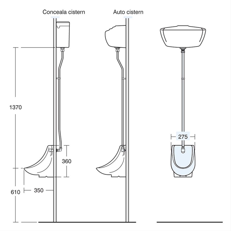 Wheelchair users may be able to pull themselves to a standing position to use a urinal, or they may be able to use a urinal from their wheelchair. The lower urinal position shown is also beneficial to a person of lower stature. Must be used in wheelchair accessible male washrooms. Minimum of 2 x 600mm S6454 grab rails. Urinal secured to wall with wall fixing screws (not supplied) White:Ral=9016, LRV=87 Blue:Ral=5011, LRV=6 Red:Ral=3020, LRV=12 Grey:Ral=7005, LRV=19 Charcoal:Ral=7016, LRV=8