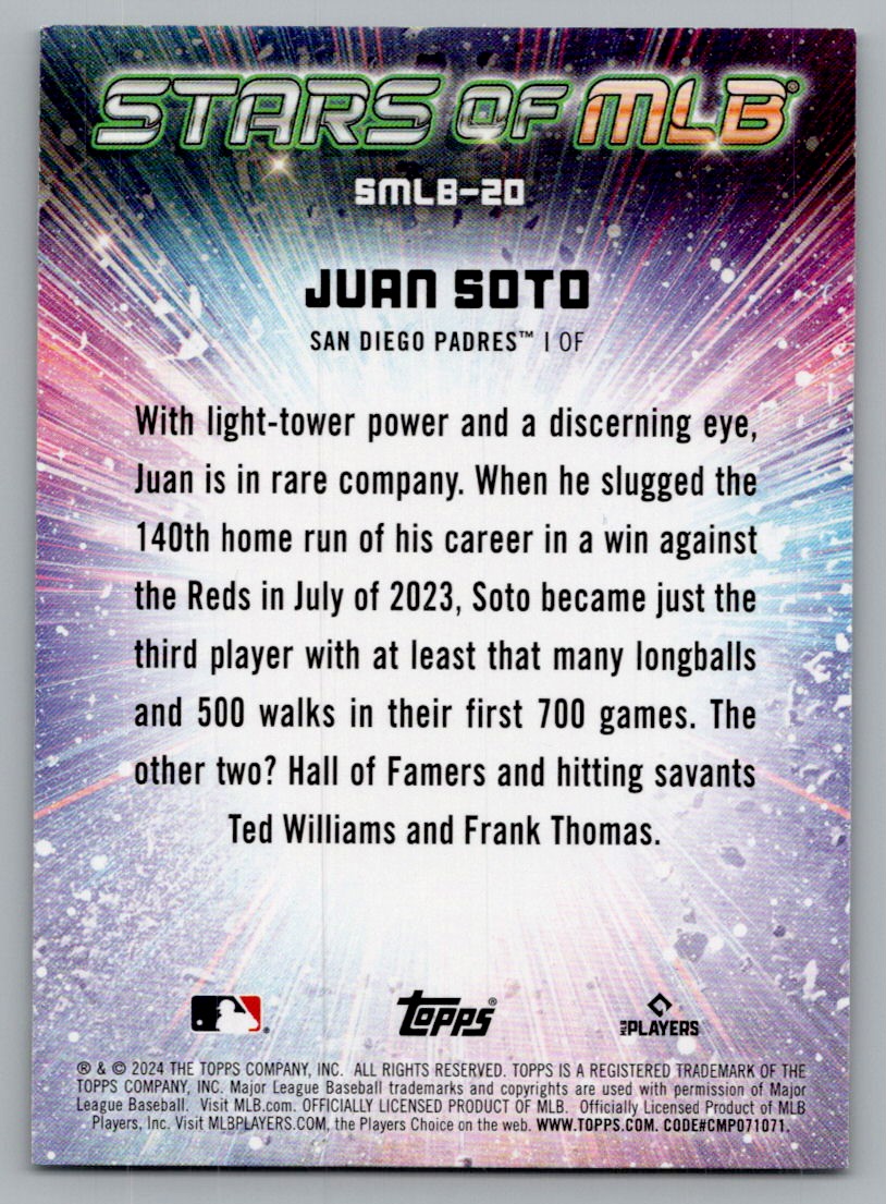 | 2024 TOPPS SERIES 1 STARS OF MLB JUAN SOTO SAN DIEGO PADRES #SMLB-20 |