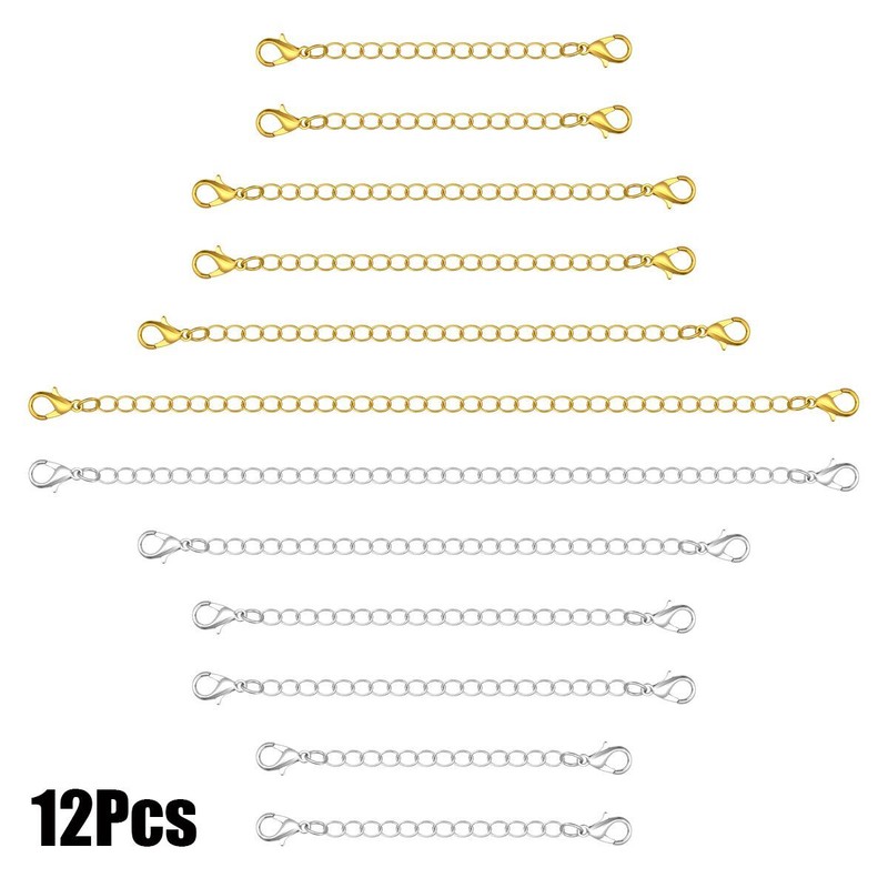 12 PCS SET: 12 pcs extender chains set, of classic colors and 4 different lengths, help to extend your bracelet, necklace, anklet, jewelry, and so on ornaments, add more styles or for a better fit.