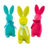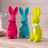 Add some bright colors to Easter tabletop decorations with this adorable set of bunnies. These flocked figures are a fun and festive way to welcome spring after a season of muted tones. Their cheerful colors and soft texture bring warmth and charm to mantels, tables, or party scenes. A playful and eye-catching addition to any spring celebration! © OTCbr