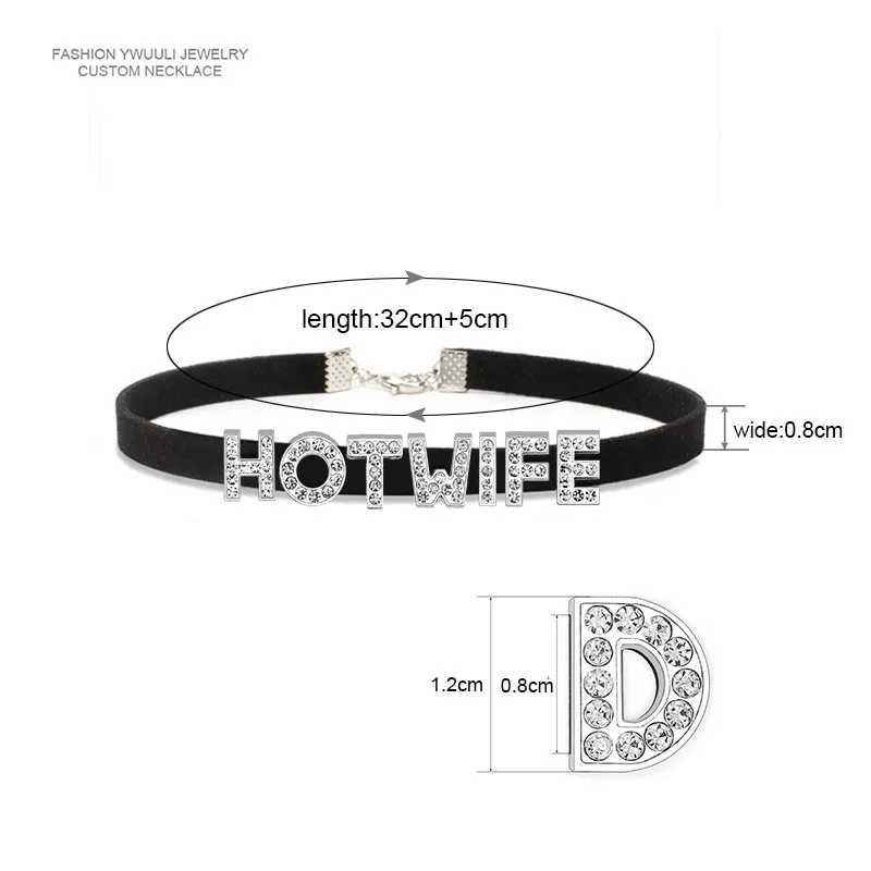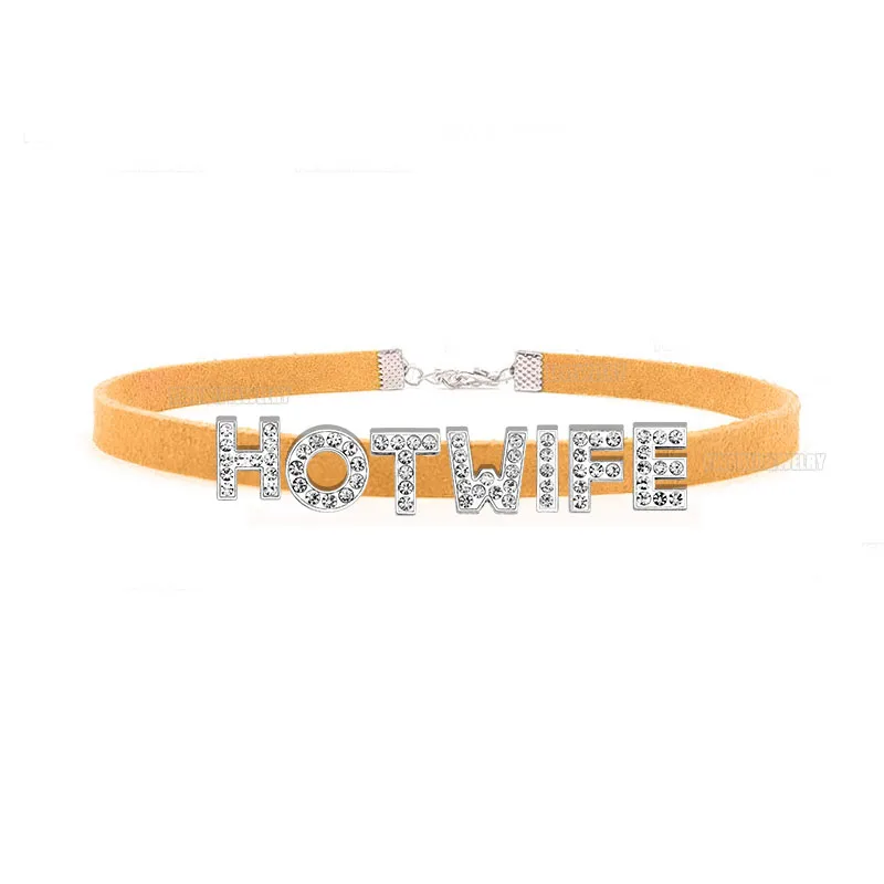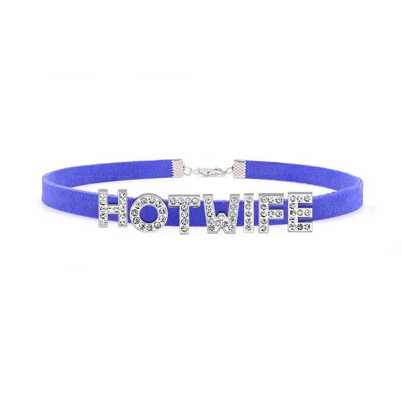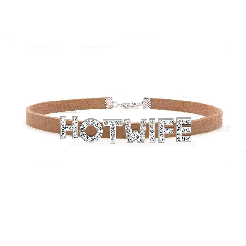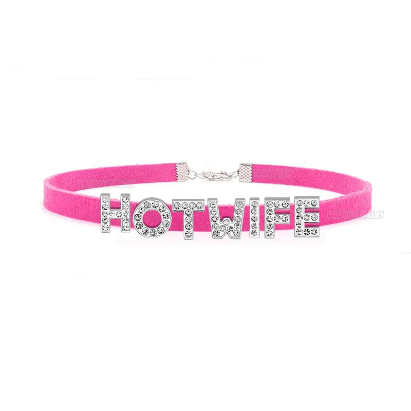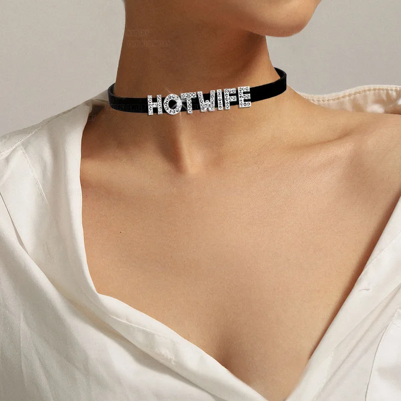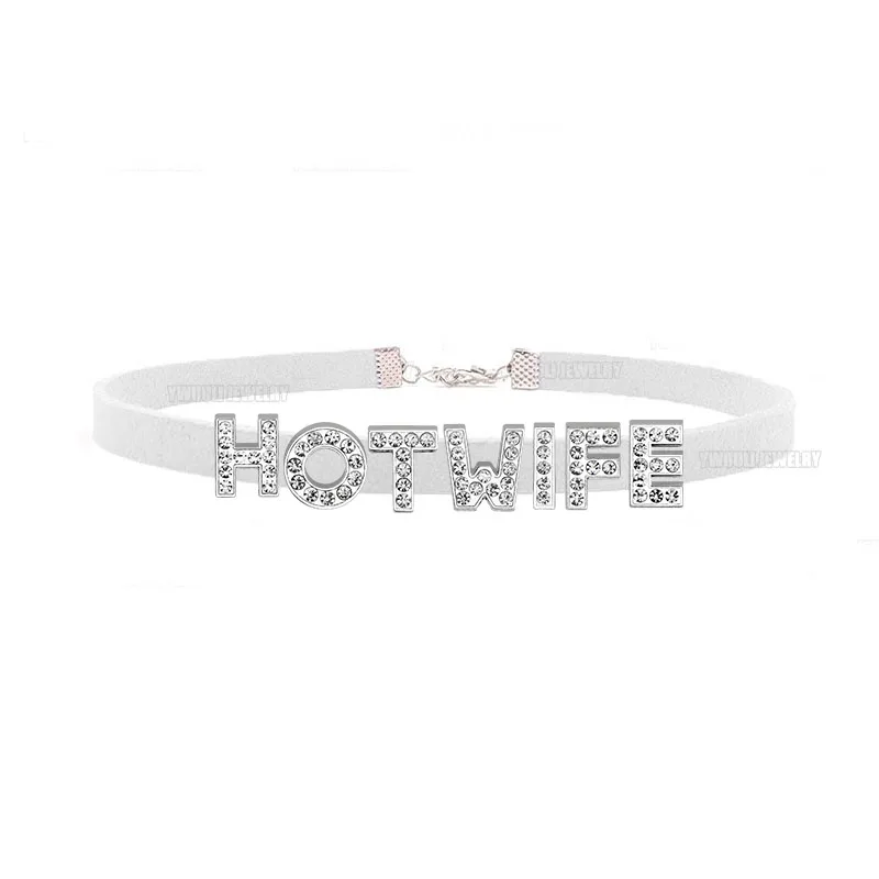Rhinestone Letter Sexy HOT WIFE Necklace for Women Bad Words Custom Choker Fashion Korean Leather Collar Cosplay Jewelry Gift