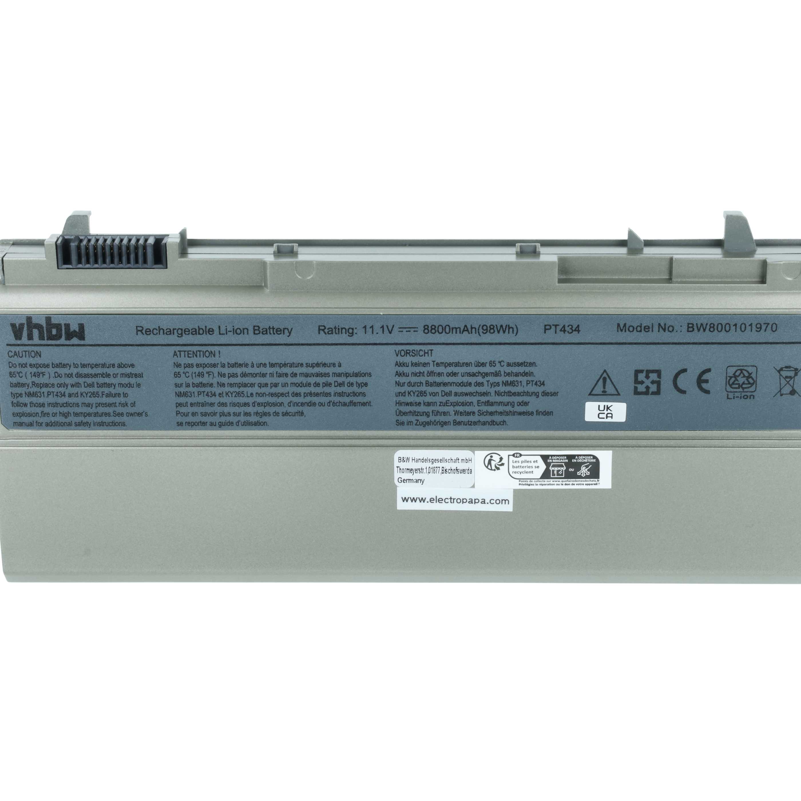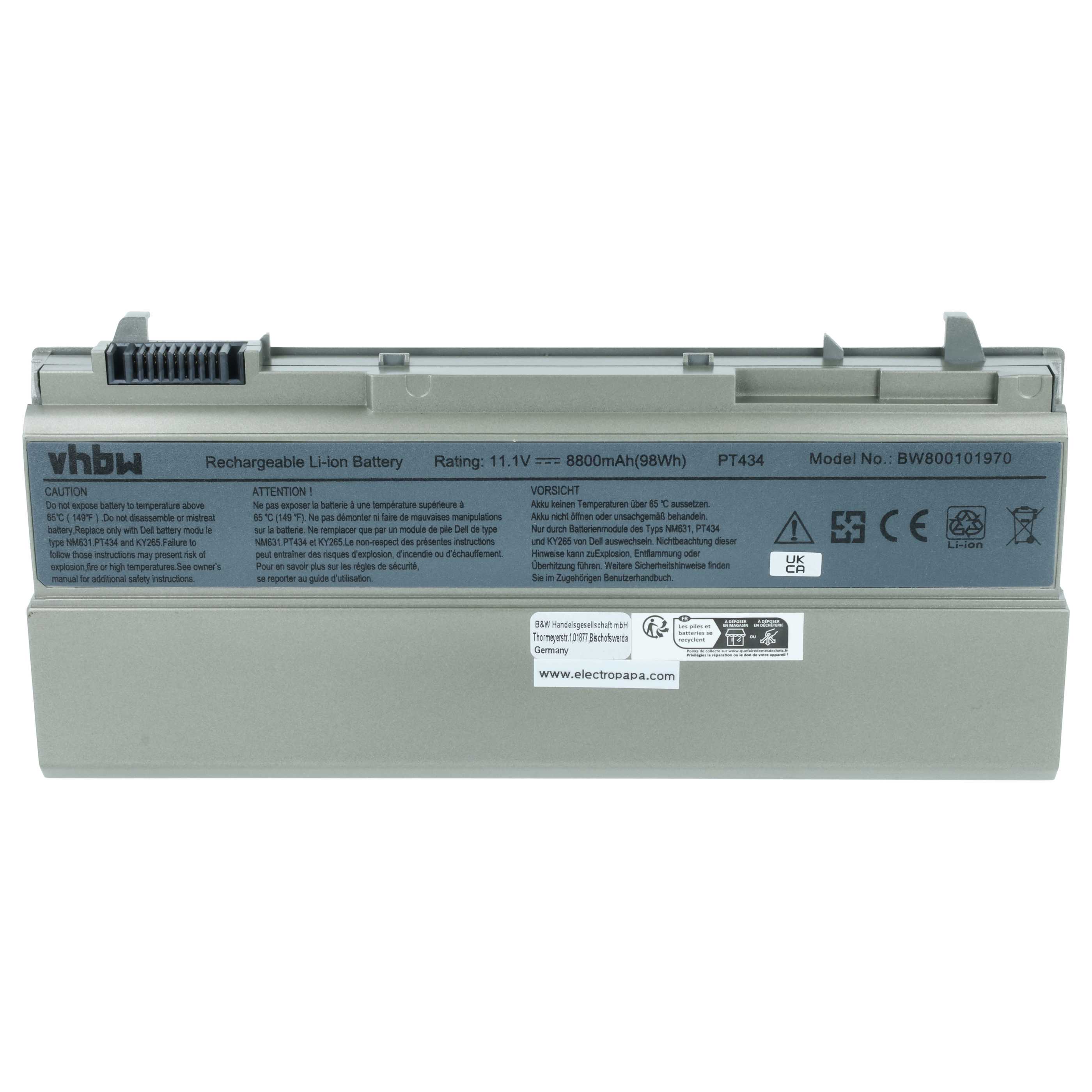 vhbw leistungsfähiger Ersatz-Akku für Dell Latitude E6400 ATG, 6400 ATG, E6410, E6400 XFR, E6400 Laptop, Netbook (Li-Ion, 8800mAh, 11,1V)