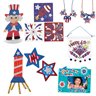 This assortment is bursting with USA pride! Including a variety of fun crafts with patriotic themes and plenty of red, white and blue, the crafts in this assortment will provide hours of crafty fun for kids. Great for at-home activities in the summer or as a kids’ activity for an Independence Day party, these crafts will keep kids engaged and entertained. (84 pcs. per unit) Assortment may vary. All craft kit pieces are pre-packaged for individual use. Kits include instructions.br br Includes:br • 12 Patriotic Rocket Ship Magnet Craft Kits (Includes self-adhesive foam pieces and wooden craft sticks. 2 3/4" x 8 1/4" Magnets are packaged separately. Do not discard.)br • 12 Patriotic Necklace Craft Kits (Wood beads. Includes 28” nylon cord.)br • 12 Patriotic Picture Frame Magnet Craft Kits (Includes self-adhesive foam pieces and magnets. 6 3/4" x 5 1/2" with a 4" x 2 3/4" photo spaces. Magnets are packaged separately. Do not discard.)br • 12 Uncle Sam Stand-Up Craft Kits (Includes self-adhesive foam pieces and googly eyes. 4 1/4" x 4 1/4" x 8")br • 12 Self-Adhesive Cardboard Patriotic Glitter Art Pictures (5” x 5” Includes assorted bags of glitter. Simply peel off the protective covering to reveal an adhesive surface, then sprinkle on the glitter.)br • 12 Patterned Patriotic Star Magnet Craft Kits (4" x 3 3/4" Includes self-adhesive felt pieces and double-sided adhesive foam pieces. Magnets are packaged separately. Do not discard.)br • 12 Color Your Own Patriotic Banners with Pom-Pom Trim (8" x 7 1/2" Includes paper with wooden dowels and satin cord for hanging.)br br Assortments are subject to change at any time and may vary from picture shown. Substituted items will be similar in nature.