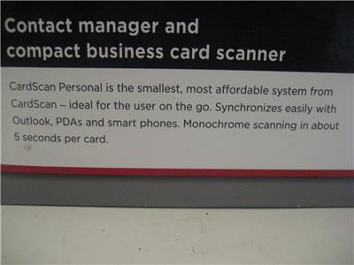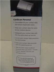 CardScan Personal is the most affordable and compact system from CardScan. The palm sized scanner has a closing scanner door, detachable USB cord and handy travel case. It synchronizes with Outlook, PDAs and smart phones. The ultimate contact manager, CardScan Personal is the perfect companion for today's mobile lifestyle.