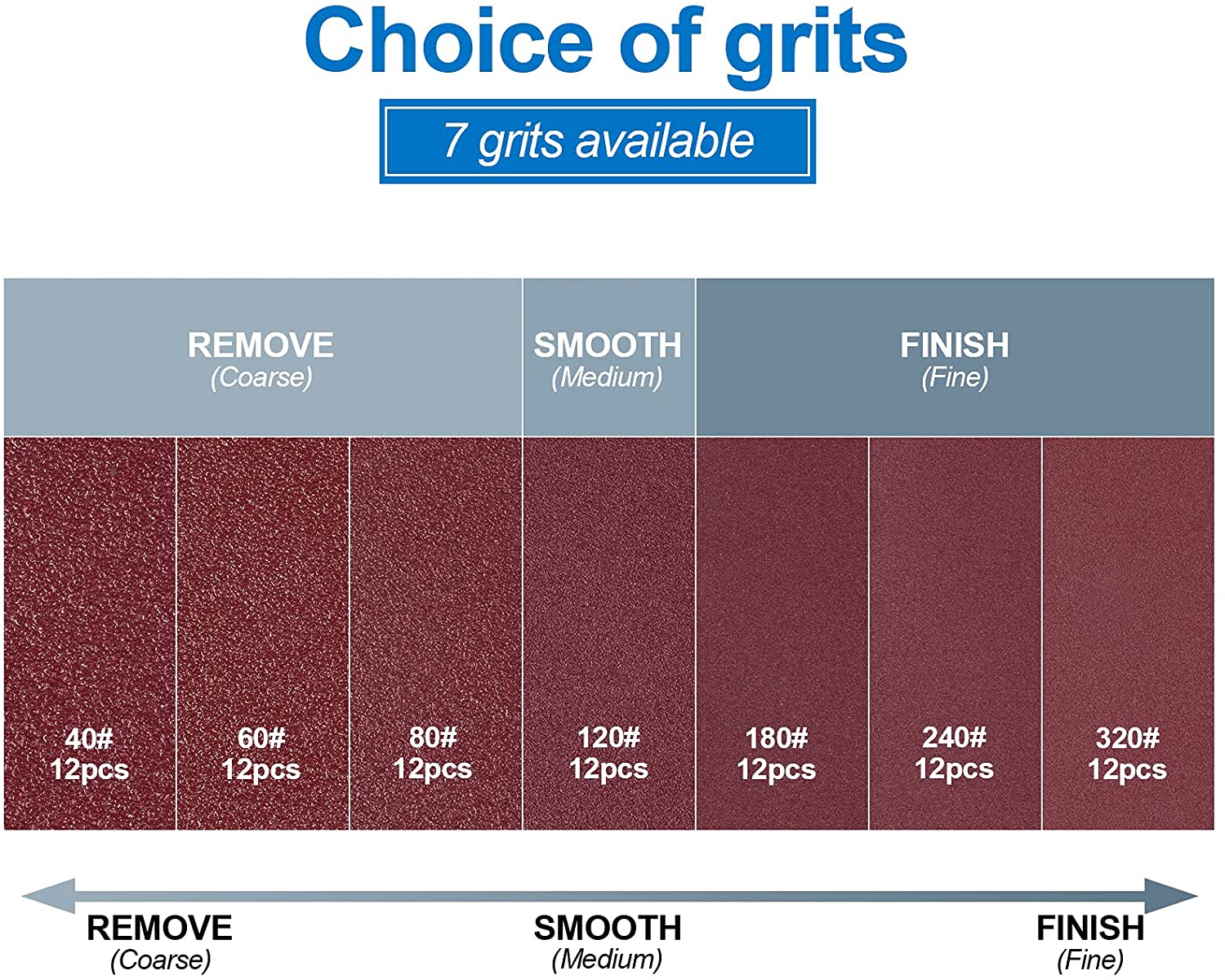 40/60/80/120/180/240/320, 12PCS for Each Grit