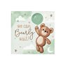 Featuring a cute teddy bear floating on a balloon, and the words “we can Bearly wait!” these beverage napkins are perfect to serve with drinks at your baby shower party. These napkins are tough enough to clean up spills and keep hands clean while still looking great.