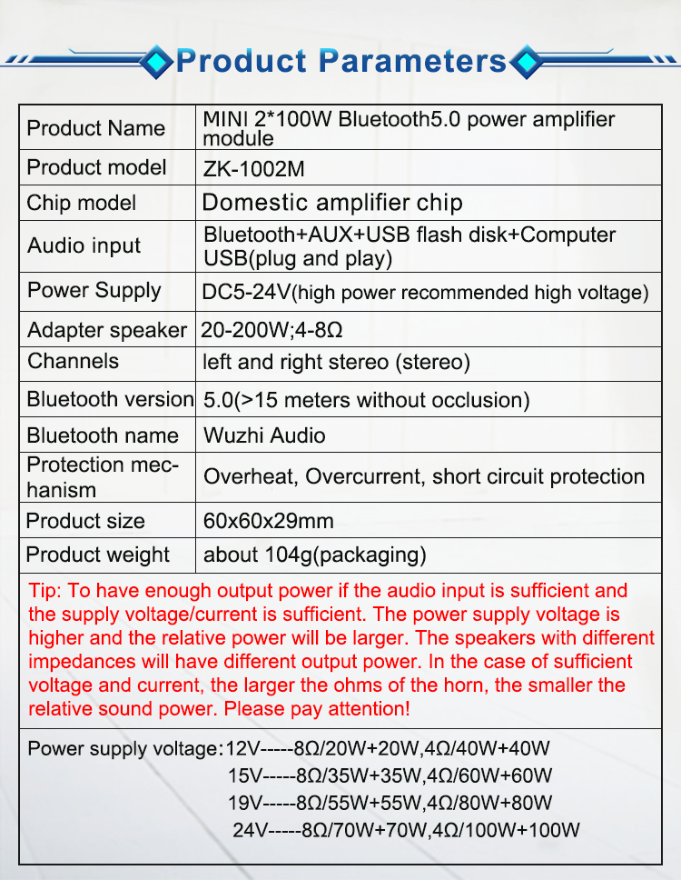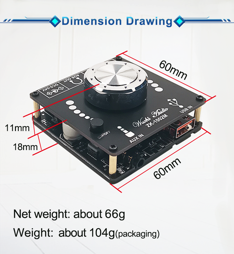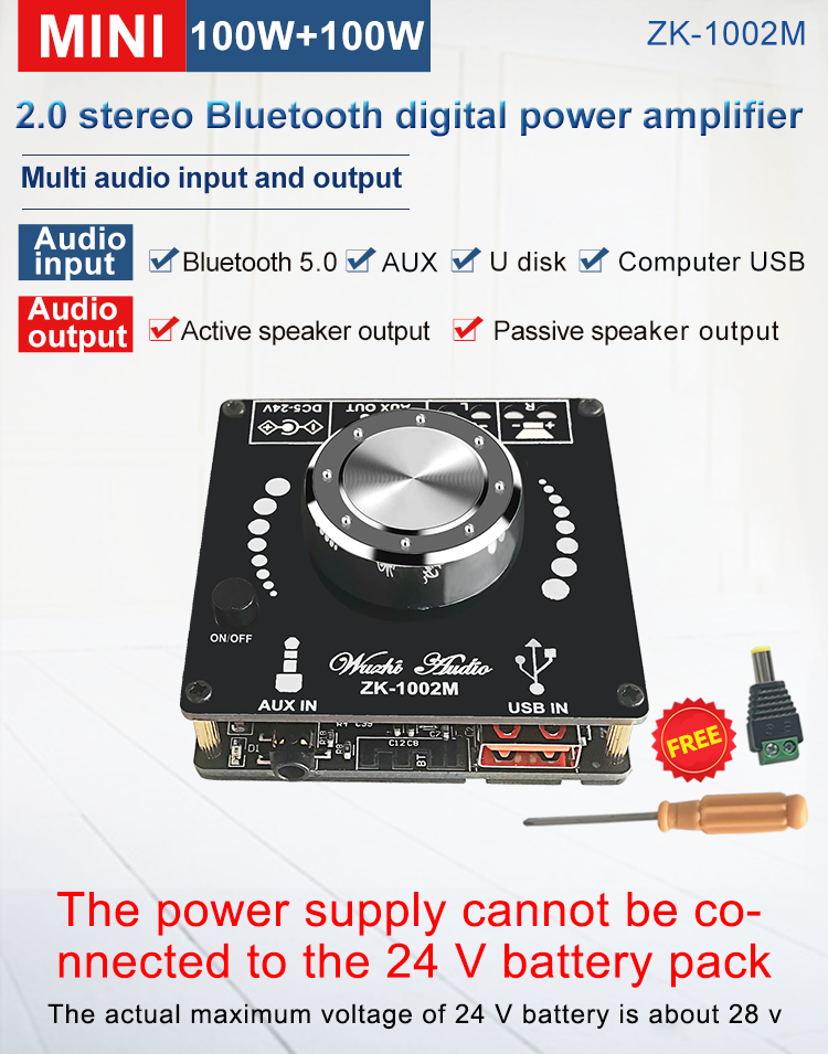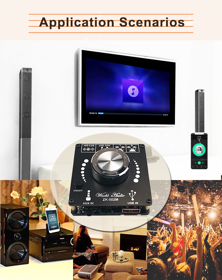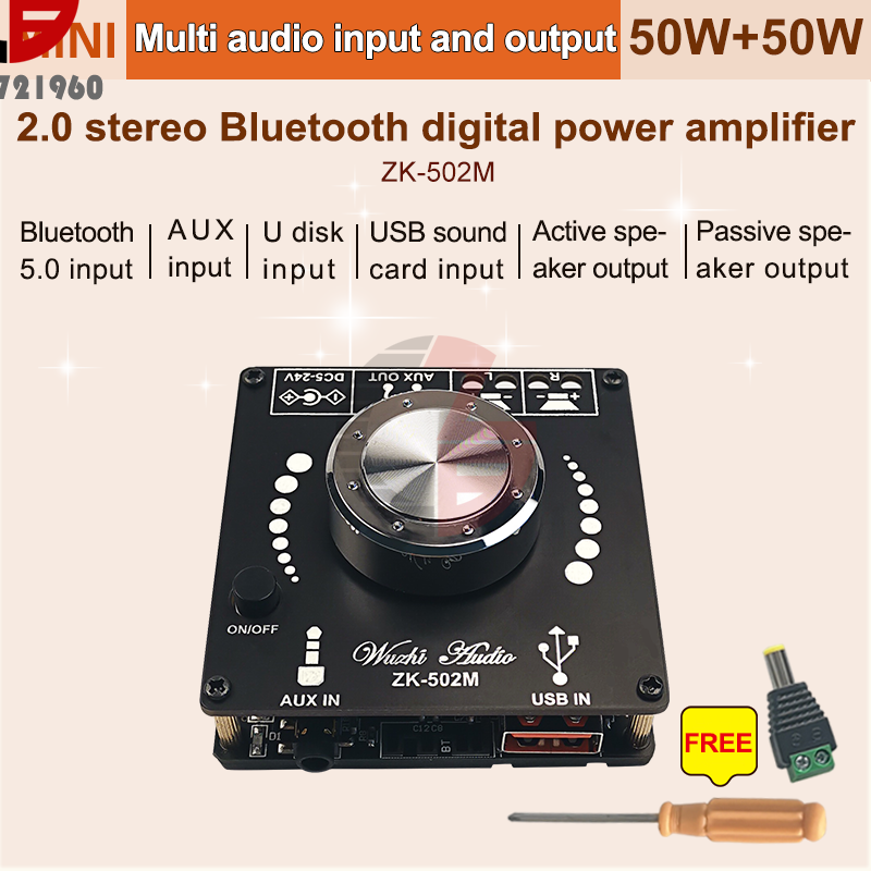 Bluetooth Power Amplifier Board Digital Audio 50W*2 100W*2 Stereo AMP Theater