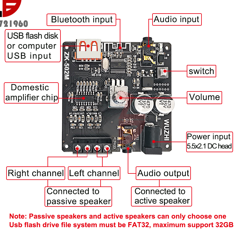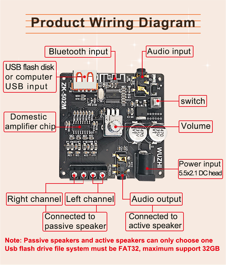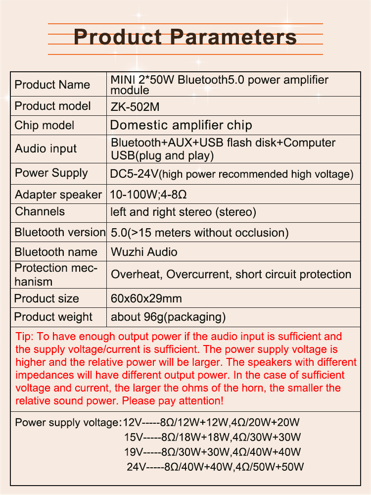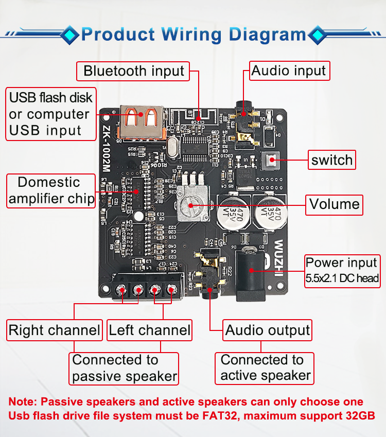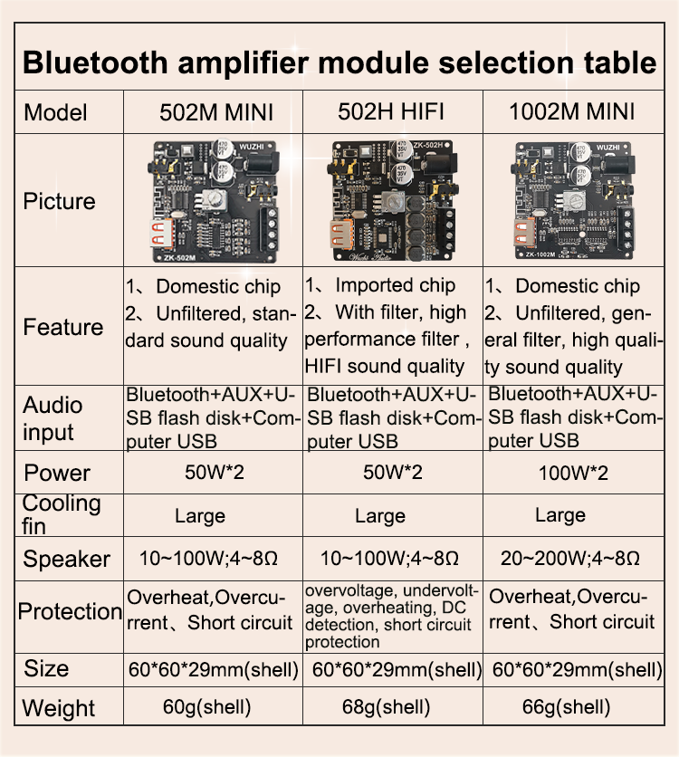 Bluetooth Power Amplifier Board Digital Audio 50W*2 100W*2 Stereo AMP Theater