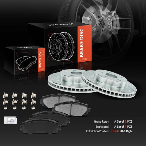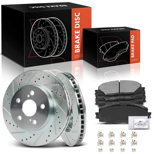 Drilled Brake Rotor & Ceramic Brake Pad for Toyota Corolla Prius L4 1.8L Front