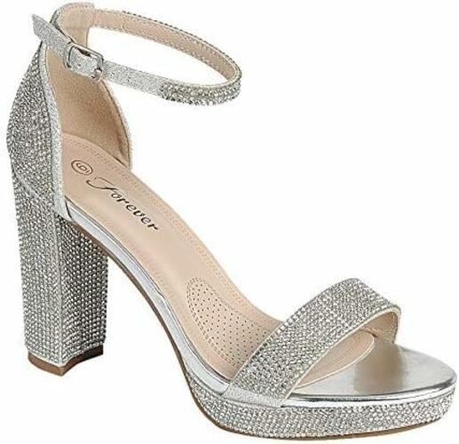 Women's Rhinestone Accent Open Toe Chunky High Heel Low Platform Formal Sandal
