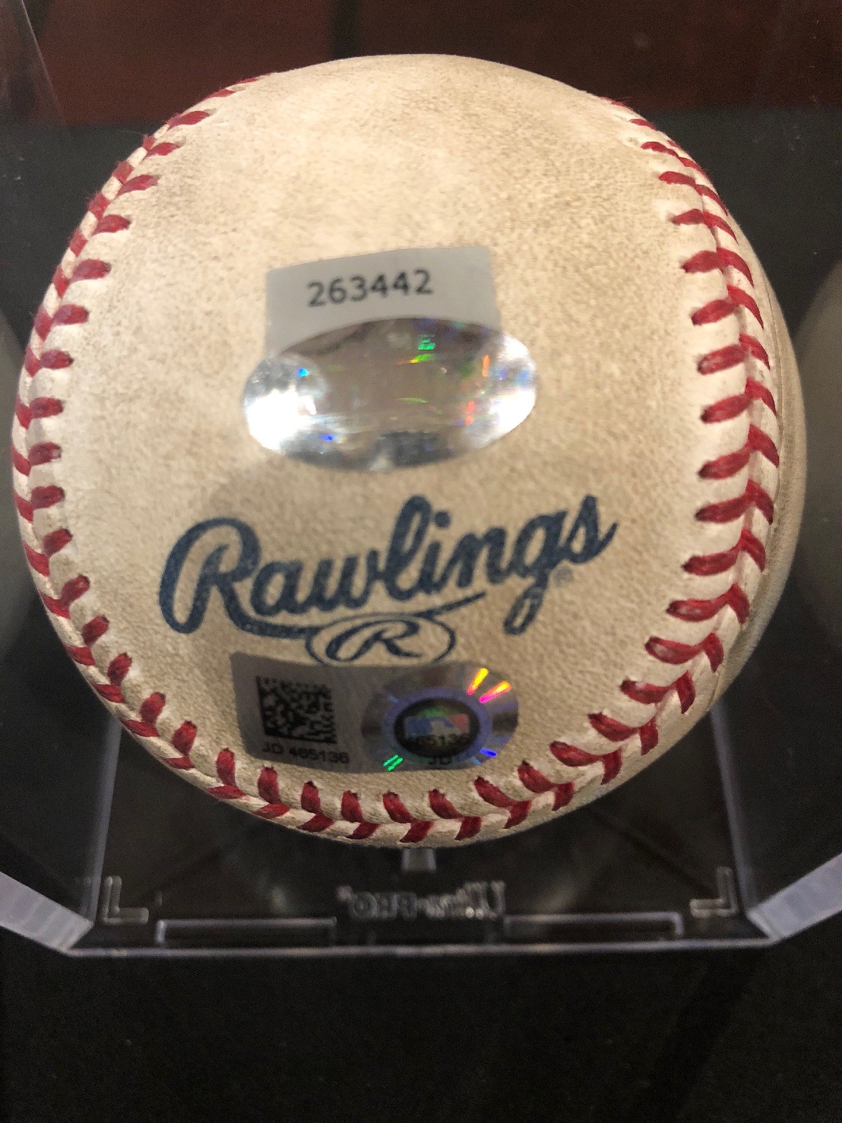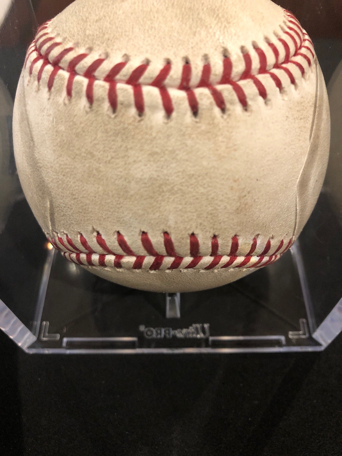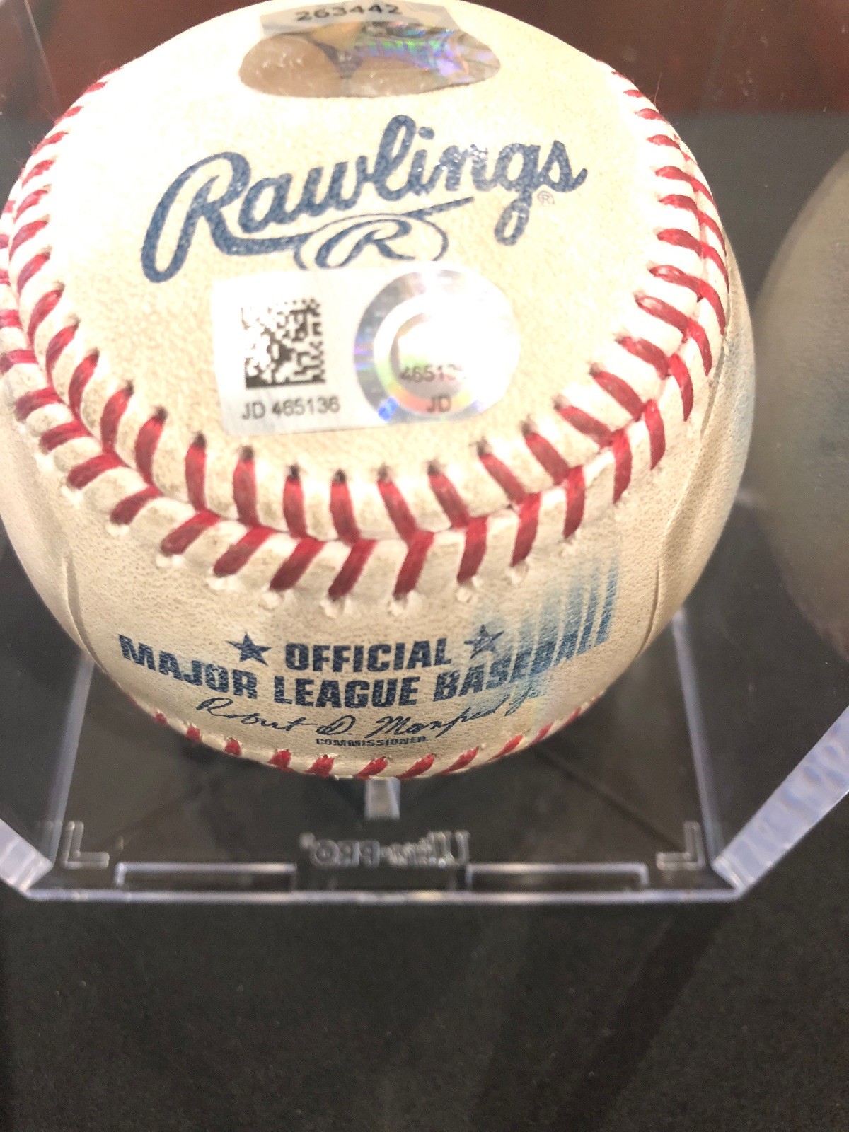 Piece of the Game Offers some of the most Unique and Hard to find MLB Game used balls on the Market. Our Goal is to have some of the best Game used Baseballs from some of the games biggest stars and rookies. Why Buy a game used baseball card or relic card for a swatch the size of a quarter of the actual game used item when you can own the entire ball or Stat that was used on the field. See our Patent Pending Baseball Identity and Future soon to be released Baseball Authenticate Masterpieces High end Game used Product. Take home a piece of Baseball History!