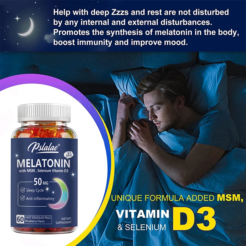 UPDATED FORMULA: Our melatonin gummies are engineered and combined with MSM, Selenium, and Vitamin D3 for even more benefits. It is rich in antioxidants that protect cells from damage, strengthen the immune system, fight inflammation, and maintain a balanced mood while resting. With this sleep aid, you can get the calming energy you need to wake up feeling refreshed and energized. Very suitable for vegetarians.