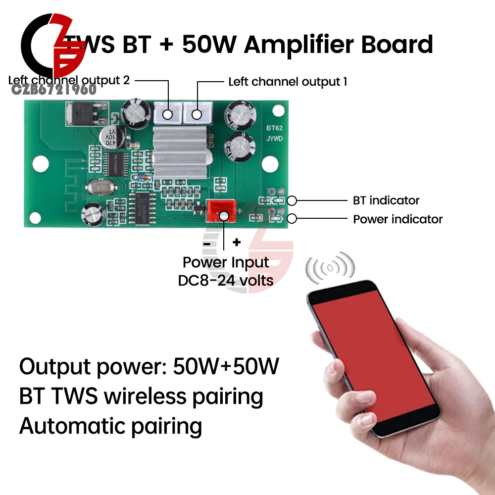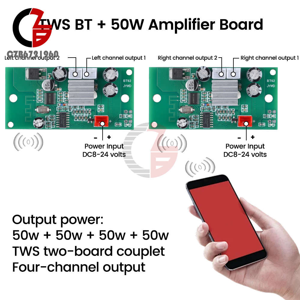 * TWS pairing method: 2 bluetooth boards power on, bluetooth boards will automatically pair up with each other to form a four-channel output.