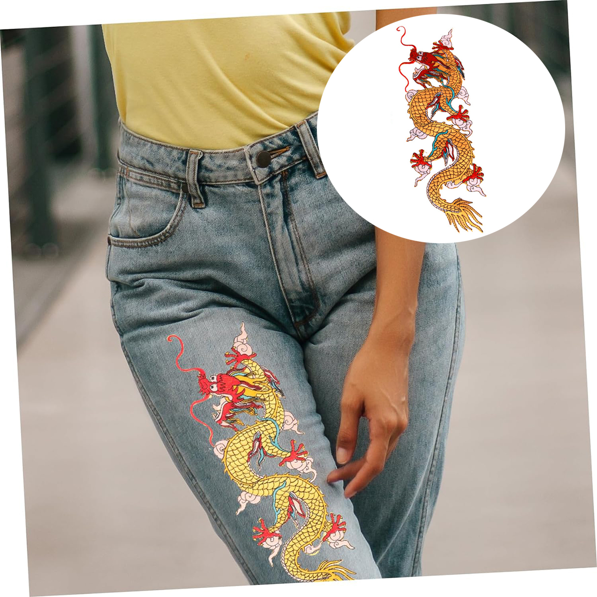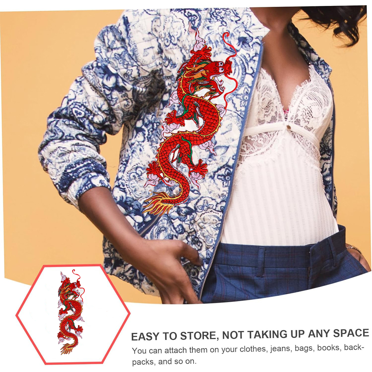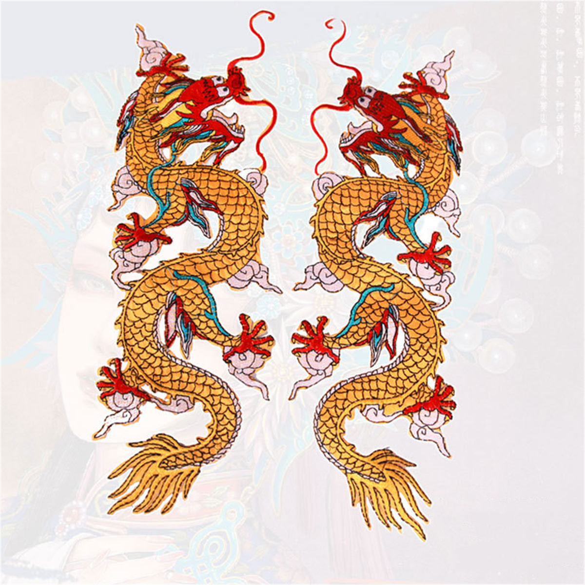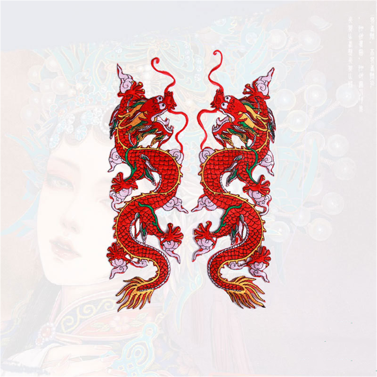 1Pair Dragon Embroidered Iron On Sew On Patch Badge Fabric DIY Jeans Jacket Bag