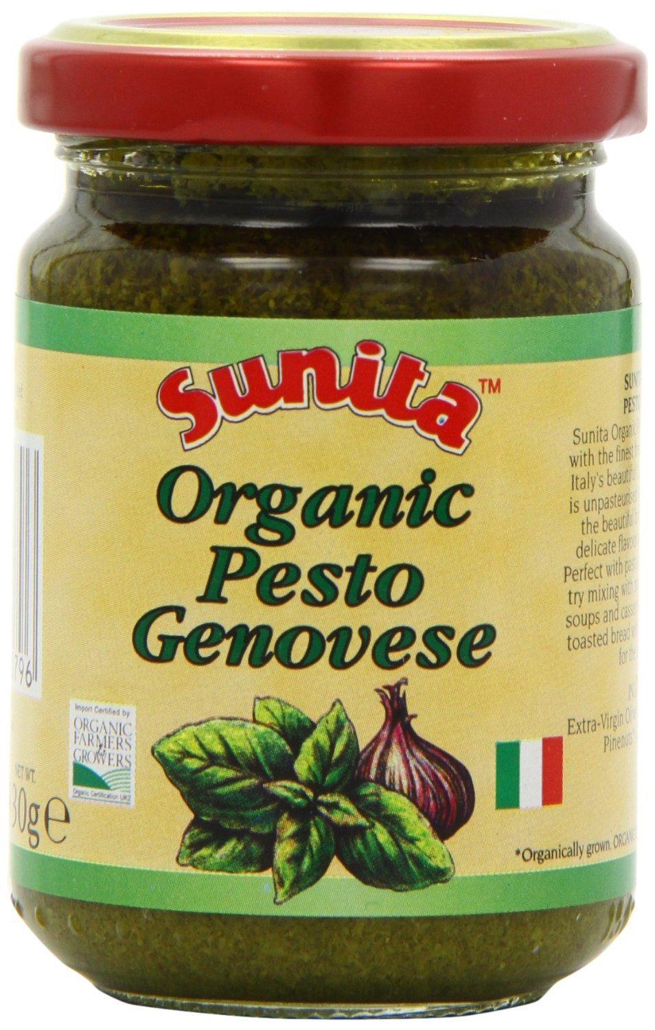 Sunita Organic Pesto Genovese is made with the finest fresh unpasteurised organic basil harvested from the beautiful Ligurian hills of North West Italy. Our processes help preserve the beautiful bright green colour, delicate flavours and aroma of the basil.