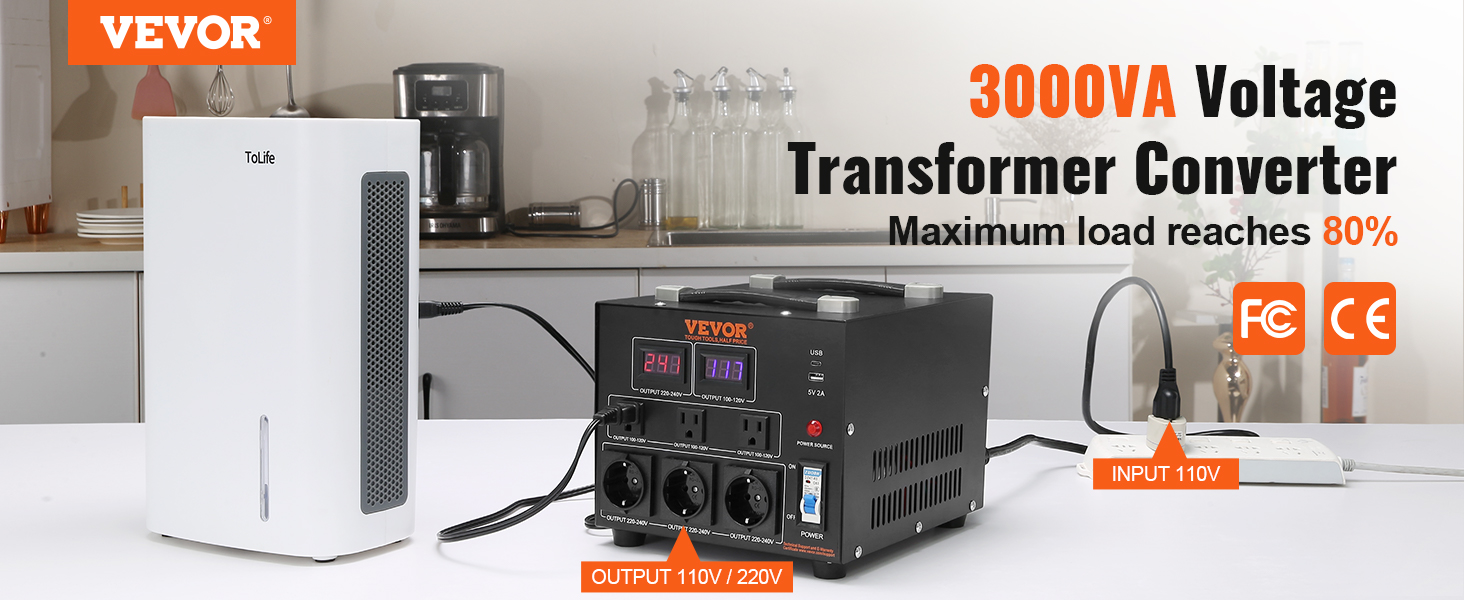 Efficient & Quiet Operation: This voltage converter transformer adopts high-quality toroidal coils for 7x24 hours of continuous operation, which helps reduce noise, odor, and product weight effectively. It runs quietly and provides precise voltage to power your devices without problems or damage. (For the best experience, it is recommended to purchase a voltage converter with a load power at least 25% higher than the total power of your device)