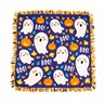 Cozy up with some Halloween style! This tied throw features festive images of ghosts, jack-o’ lanterns, fall leaves and the word, Boo! all on a purple background. Assemble this charming craft kit and throw it on your favorite chair or couch to add a Halloween decoration and comfy blanket all in one!