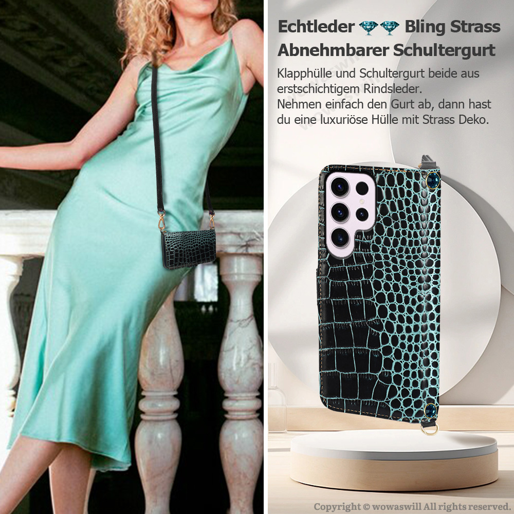 tragen möchtest,nimmst einfach die Kette ab,dann hast du eine luxuriöse Echtleder Schutzhülle mit Strass Deko,den Gurt kannst du bei deiner