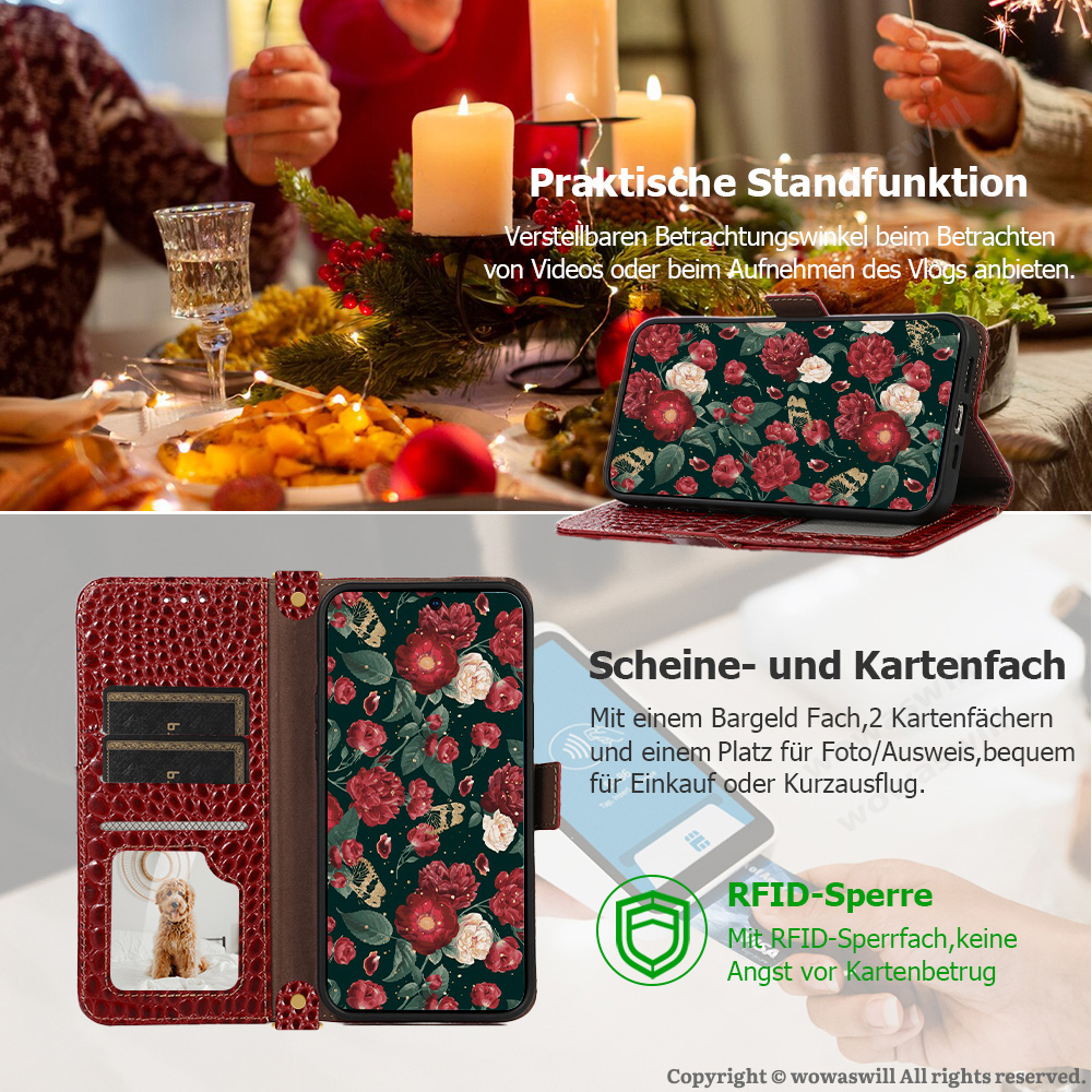 Das Echtleder Klapphülle bietet 2 Fächer für Kreditkarte,ein Geldfach und einen Platz für das Foto,dank dem Magnetverschluss