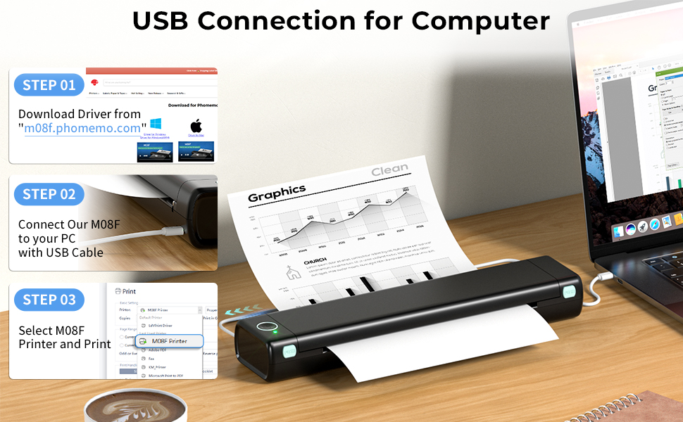 Not only does the M08F printer fit into your bag at any time, it also has a built-in 1200mAh battery that can be recharged without having to be plugged in all the time.