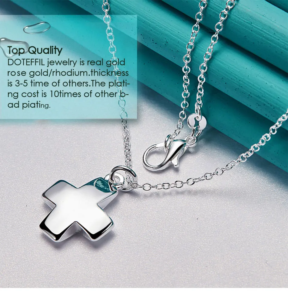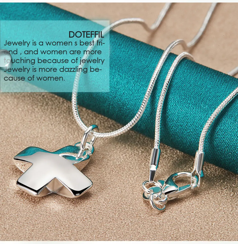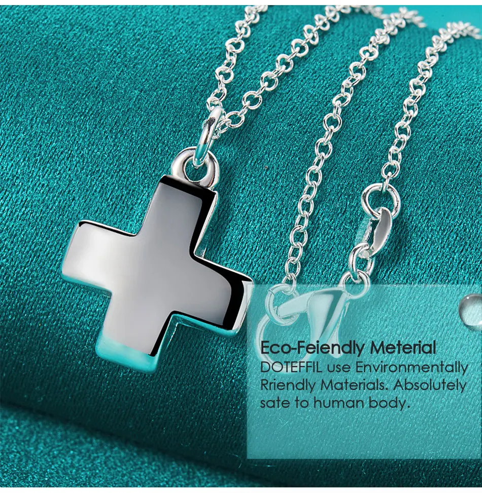 DOTEFFIL 925 Sterling Silver Cross Pendant Necklace 16-30 Inch Snake Chain For Women Man Wedding Engagement Party Jewelry