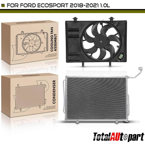 AC Condenser & Single Cooling Fan Assembly Kit for Ford EcoSport 18-21 L3 1.0L