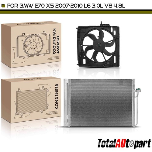 AC A/C Condenser & Cooling Fan Assembly Kit for BMW X5 2007-2010 L6 3.0L V8 4.8L